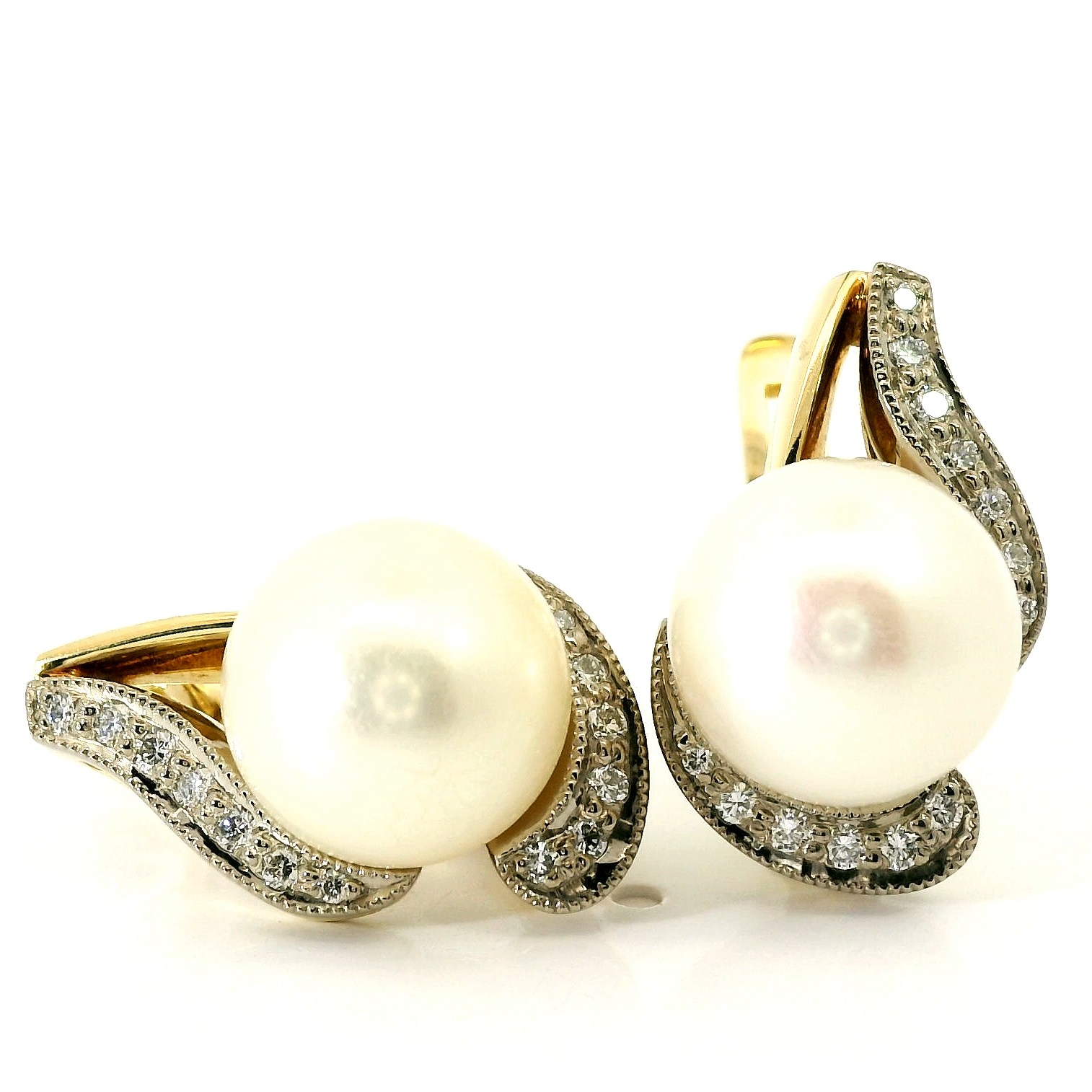 Представляем вашему вниманию золотые серьги с жемчугом 10.50 мм и бриллиантами 0.26ct.