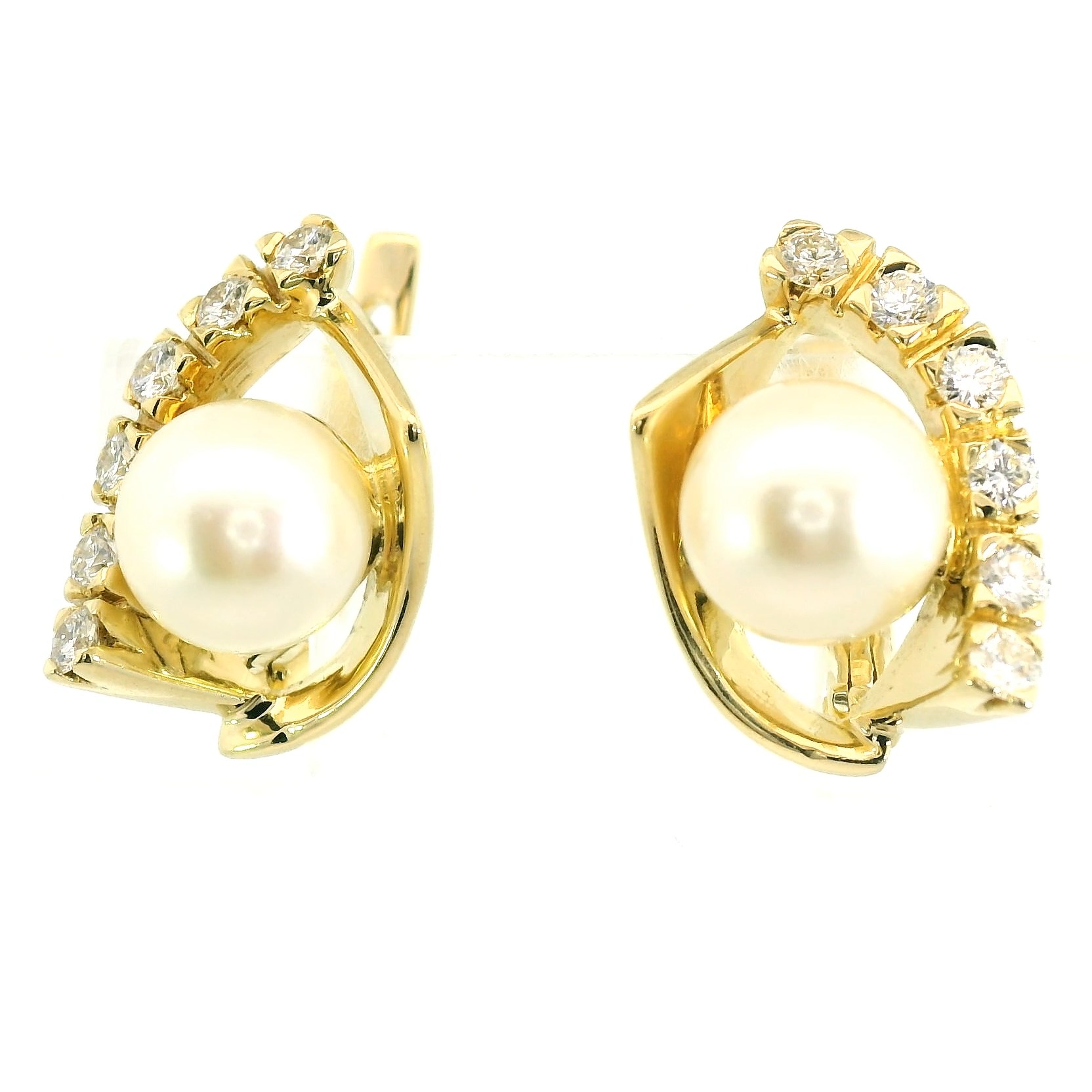 Представляем вашему вниманию золотые серьги с жемчугом 7.60 мм и бриллиантами 0.54ct.
