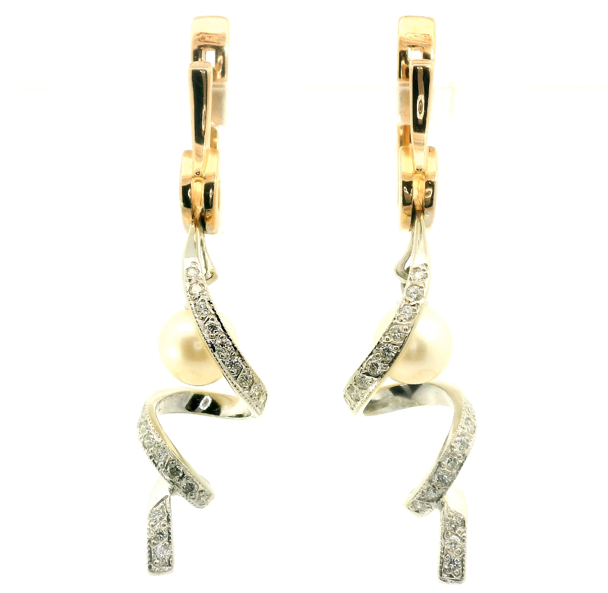 Золотые серьги с жемчугом и бриллиантами 0.30ct 120724/3