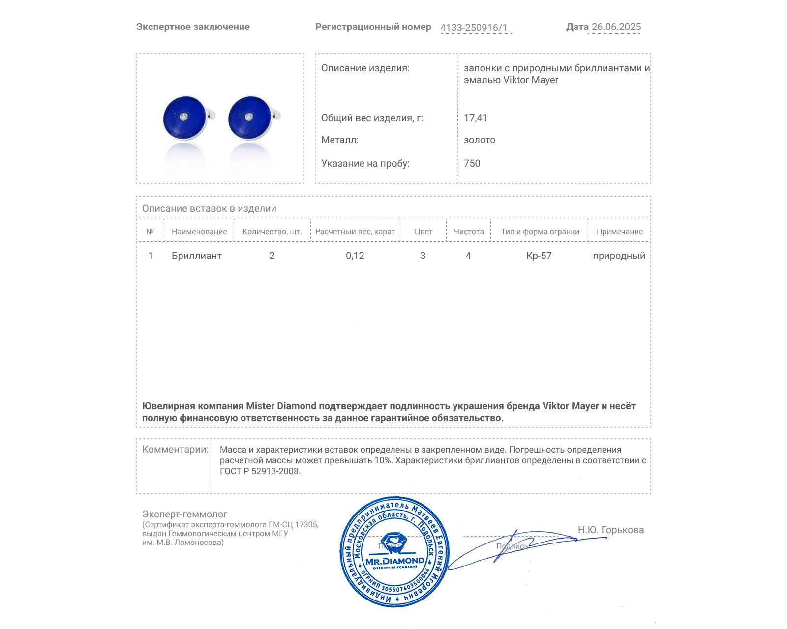 Представляем вашему вниманию оригинальные золотые запонки с эмалями и бриллиантами 0.12ct от всемирно известного бренда Viktor Mayer.