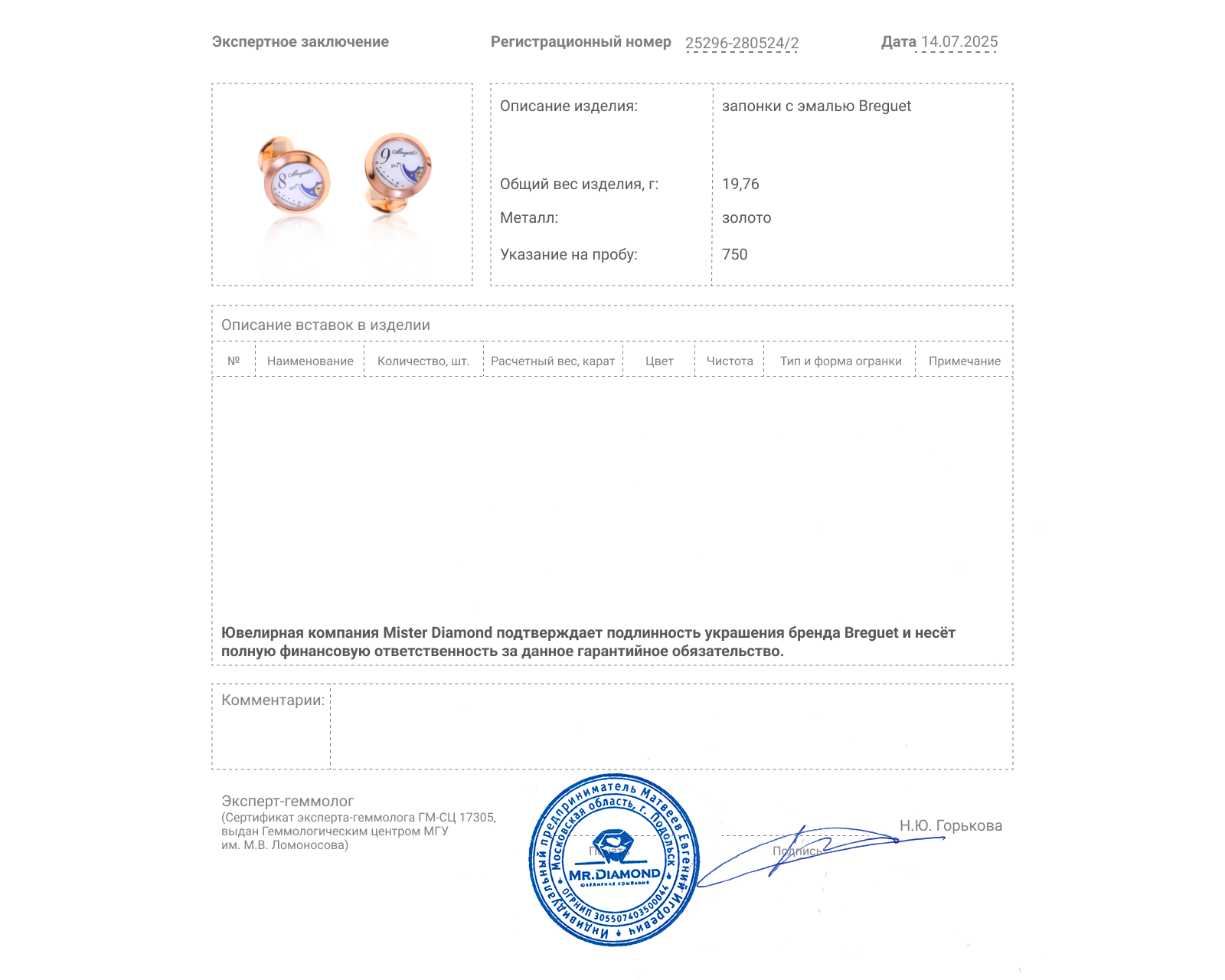 Оригинальные золотые запонки с эмалью Breguet 230223/4