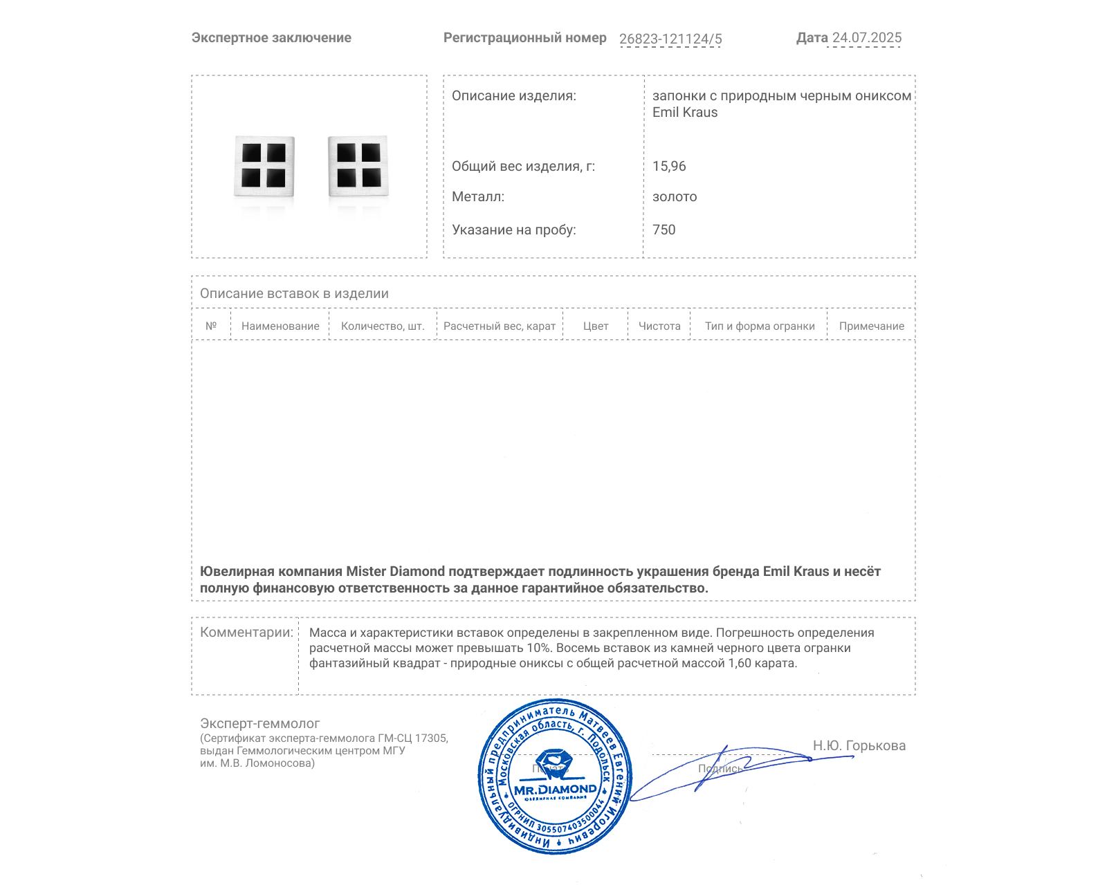 Представляем вашему вниманию оригинальные золотые запонки с черным ониксом 1.60ct от всемирно известного бренда Emil Kraus.
