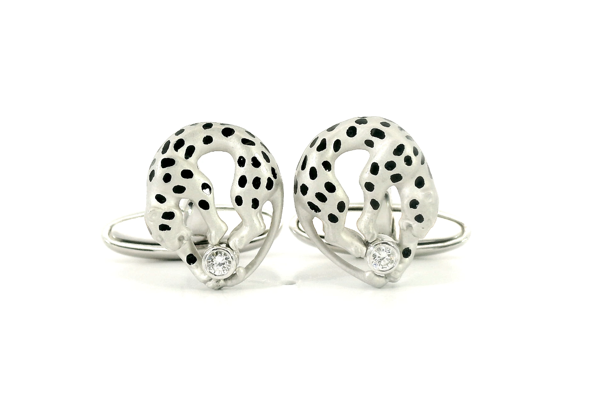 Представляем вашему вниманию оригинальные золотые запонки с эмалью и бриллиантами 0.06ct от всемирно известного бренда Carrera y Carrera из коллекции Panther.