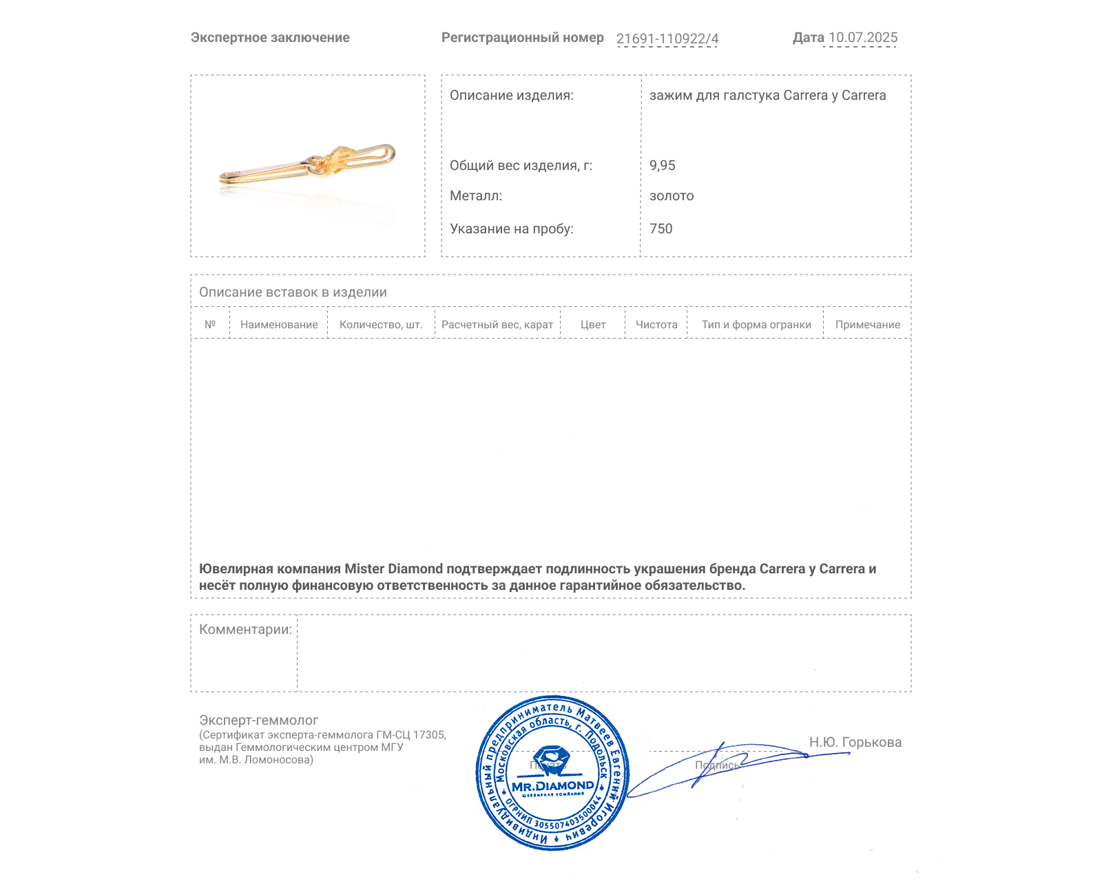 Представляем вашему вниманию оригинальный золотой зажим для галстука от всемирно известного бренда Carrera y Carrera из коллекции Horse.