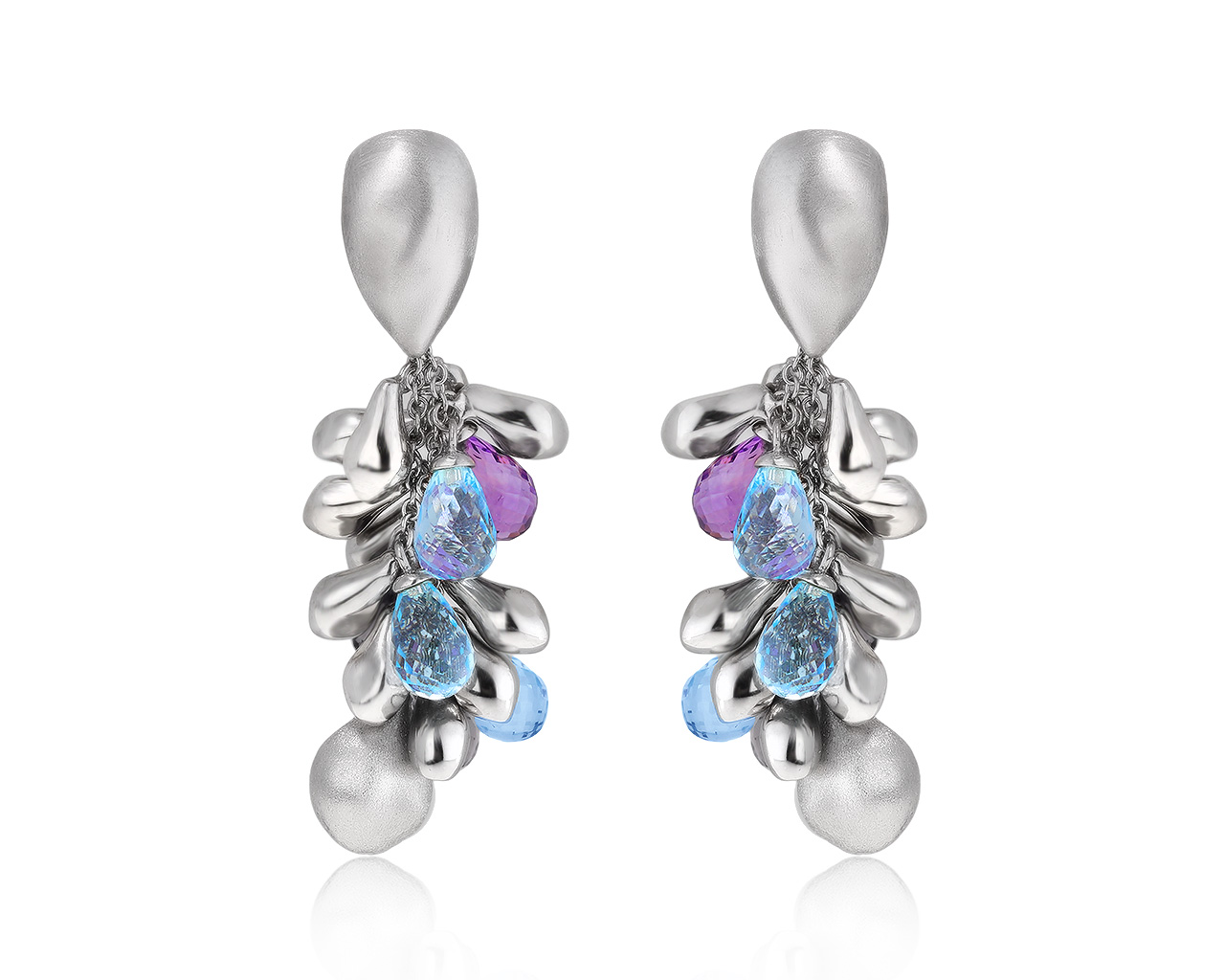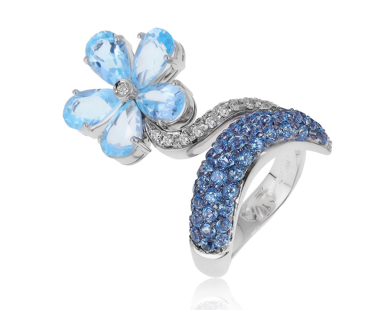 Чаще всего украшения с топазом очаровывают чистым голубым цветом. Однако палитра минерала намного шире. В природе встречаются бесцветные лейко-топазы, которые залегают близко к поверхности земли и теряют цвет под действием солнечных лучей. Среди самых редких и драгоценных — розовый камень империал, а также оранжево-красные минералы. Востребованные темные оттенки swiss blue получаются при облагораживании натуральных бесцветных или светло-голубых образцов. А популярный бренд London Blue экспериментирует с созданием ярко-синих и зеленоватых топазов.