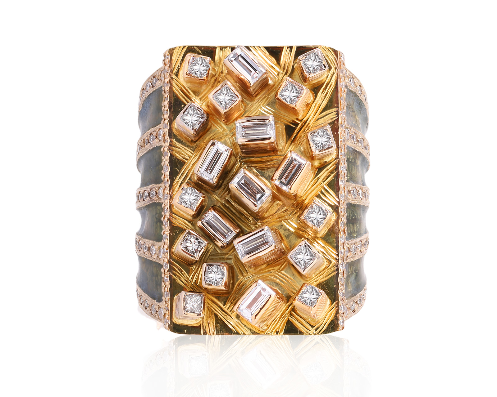 Золотое кольцо с эмалью и бриллиантами 2.26ct