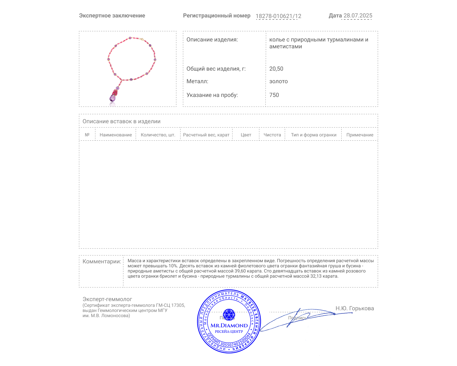 Представляем вашему вниманию коктейльное золотое колье с турмалинами 32.13ct и аметистами 39.60ct.