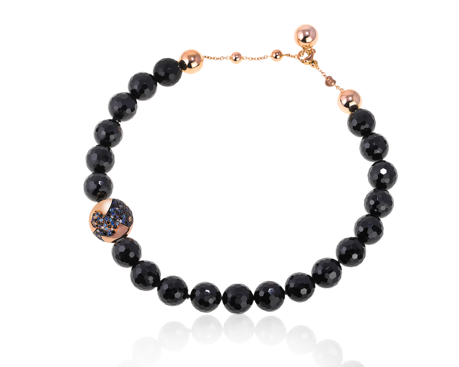 Представляем вашему вниманию оригинальное золотое колье с черной шпинелью 455.64ct, голубыми топазами 0.36ct, рубином 0.12ct, сапфирами 0.44ct и бриллиантами 0.10ct от всемирно известного бренда Pasquale Bruni из коллекции Sogni D`oro.