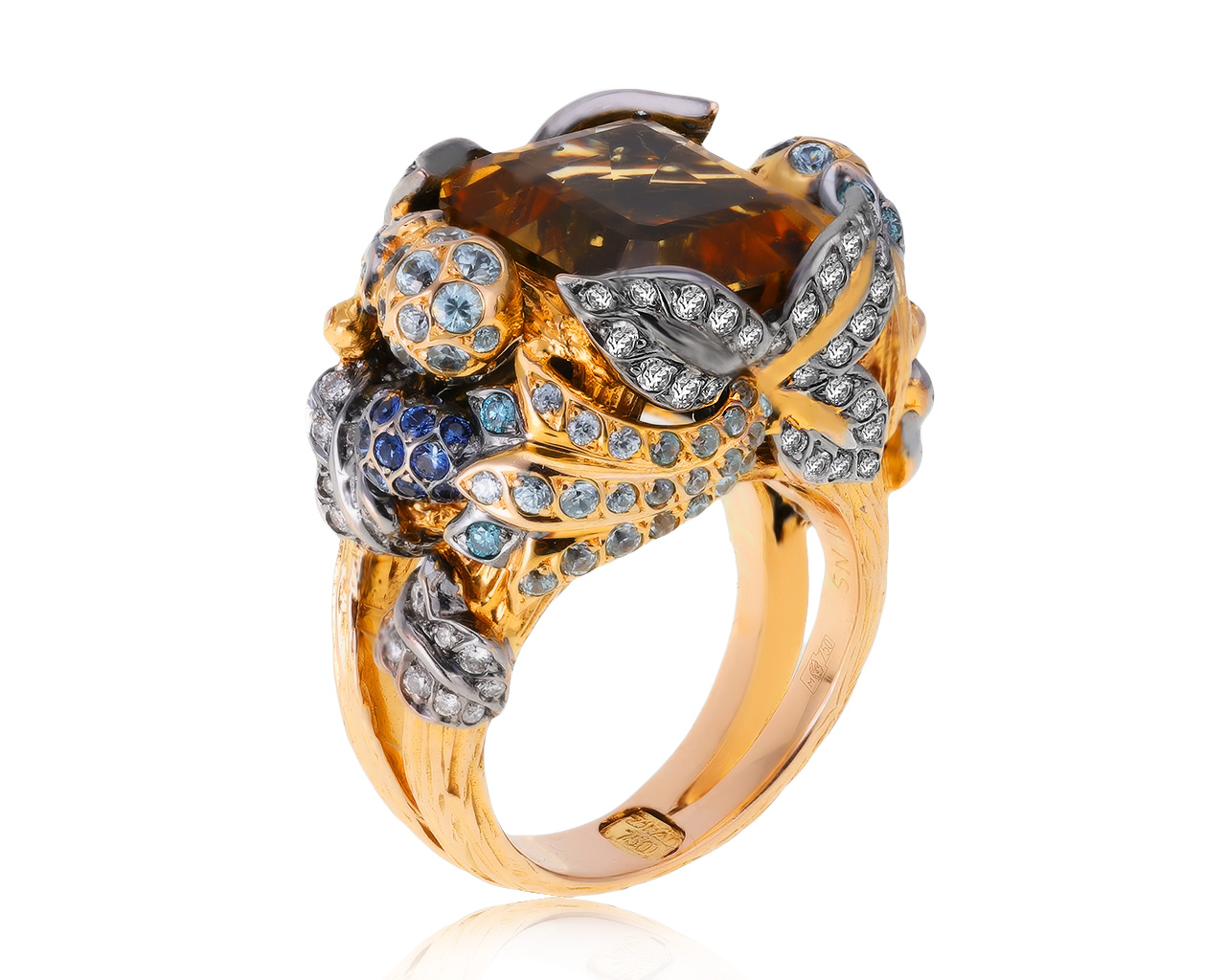 Оригинальное золотое кольцо с раухтопазом 6.73ct Angelique de Paris 040221/2