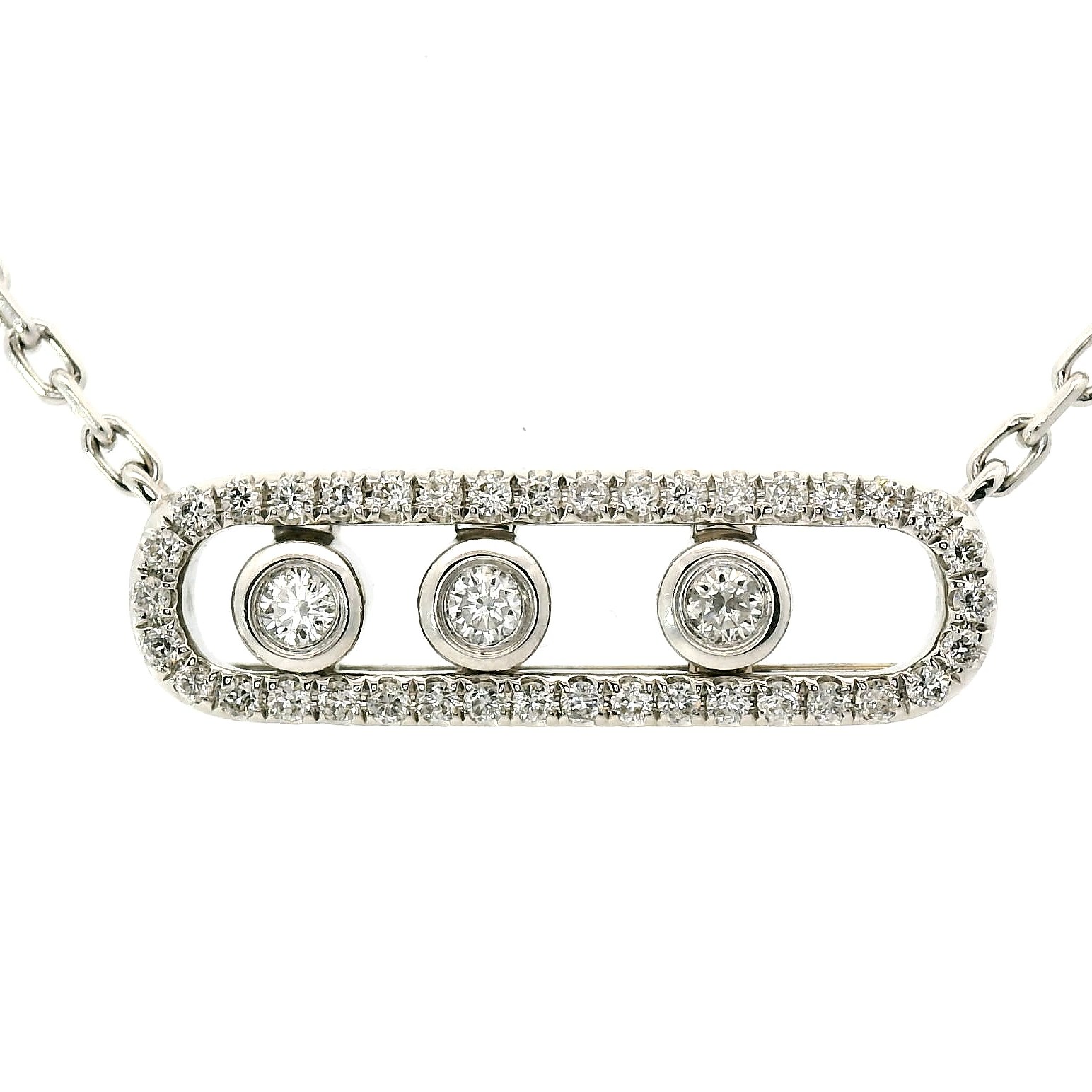 Представляем вашему вниманию оригинальное золотое колье с бриллиантами 0.35ct от всемирно известного бренда Messika из коллекции Pave Baby Move.
