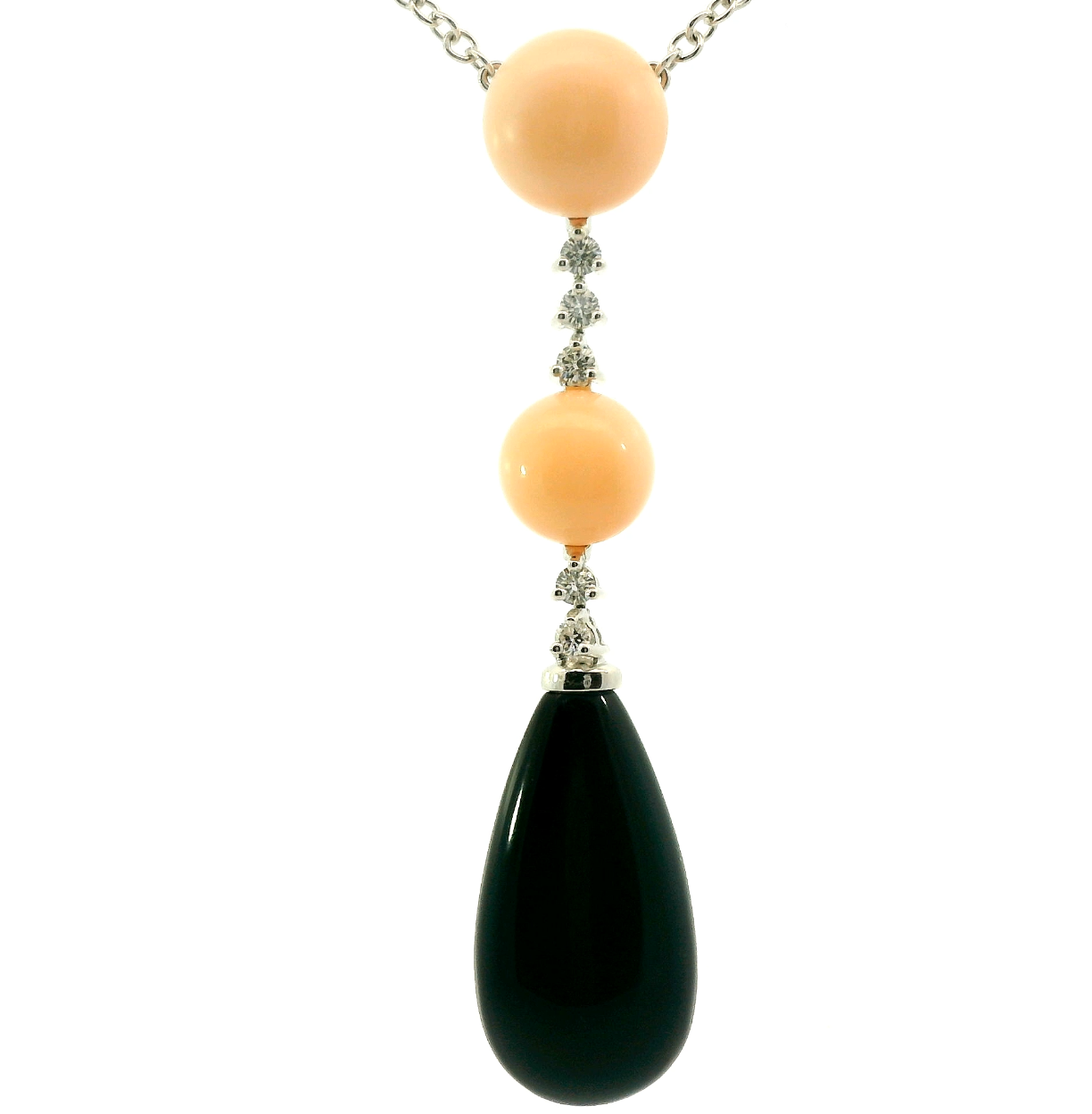 Представляем вашему вниманию оригинальное золотое колье с черным ониксом 11.20ct, кораллами 7.35ct и бриллиантами 0.26ct от всемирно известного бренда Alfieri & St.John.