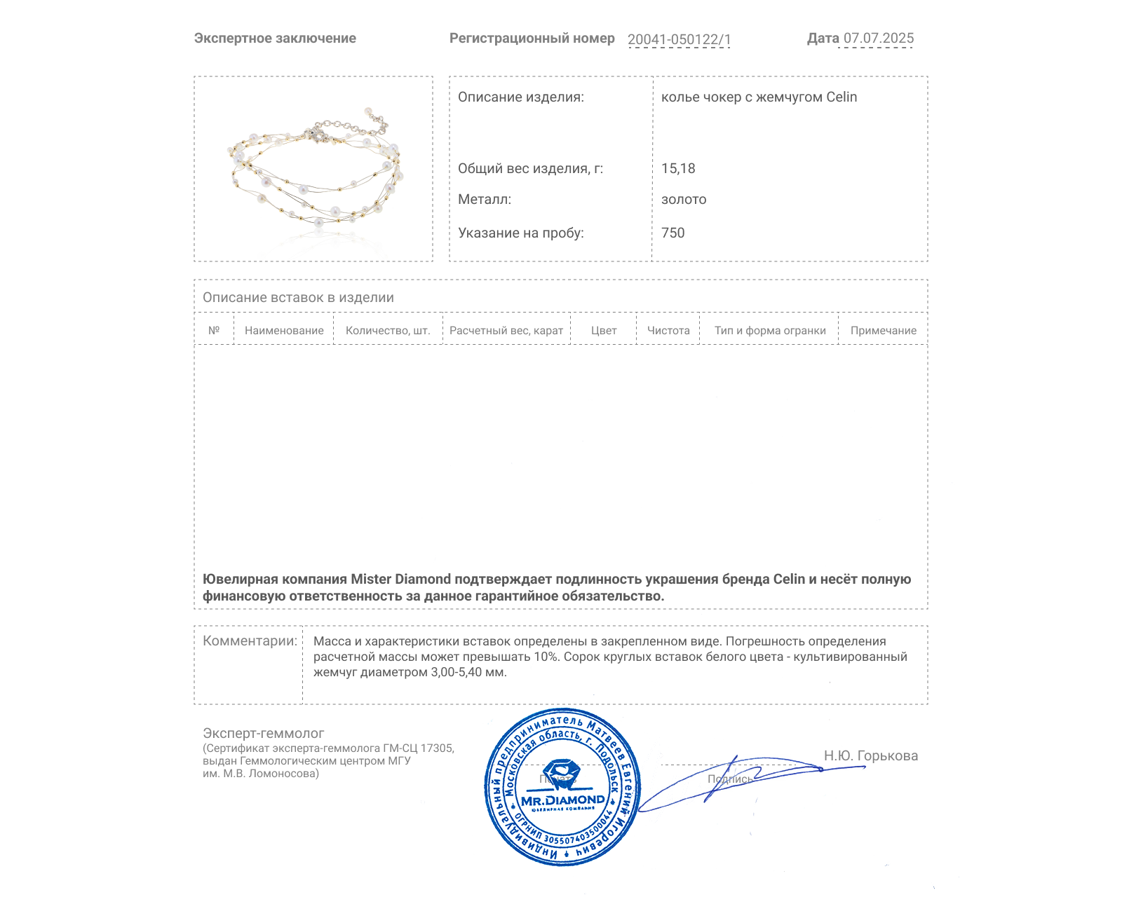 Представляем вашему вниманию оригинальное золотое колье-чокер с жемчугом 3.00 мм и 5.40 мм от известного бренда Celin.