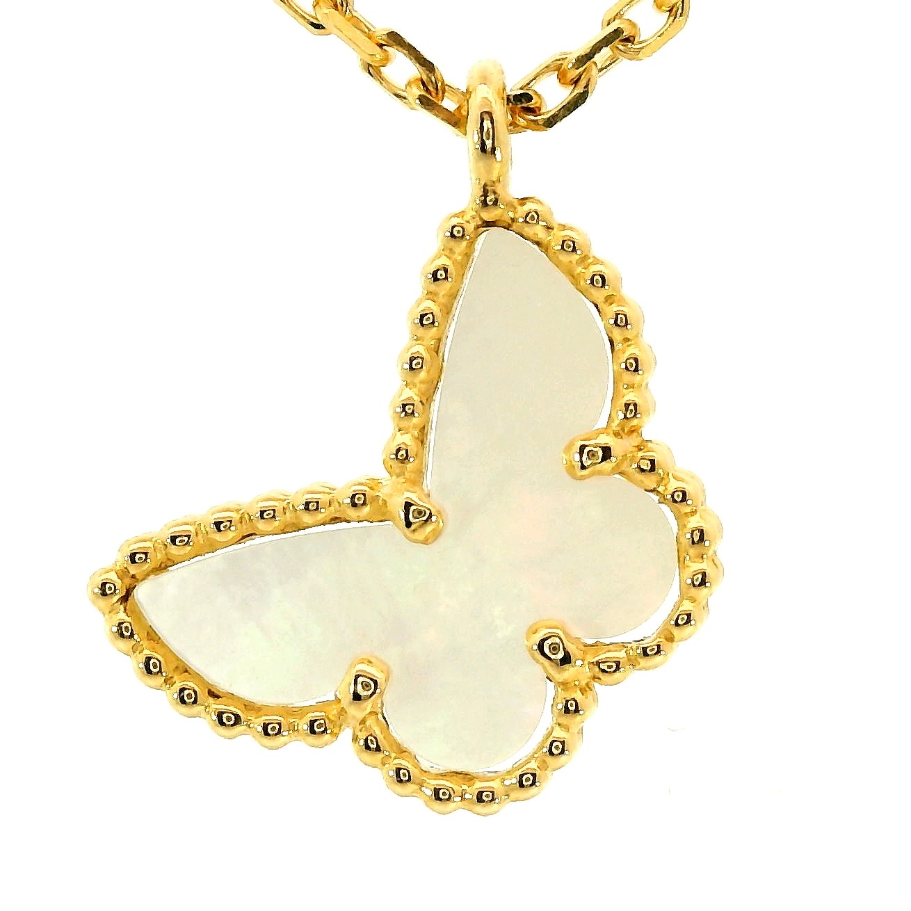 Представляем вашему вниманию оригинальное золотое колье с перламутром 0.45ct от всемирно известного бренда Van Cleef & Arpels из коллекции Sweet Butterflies.