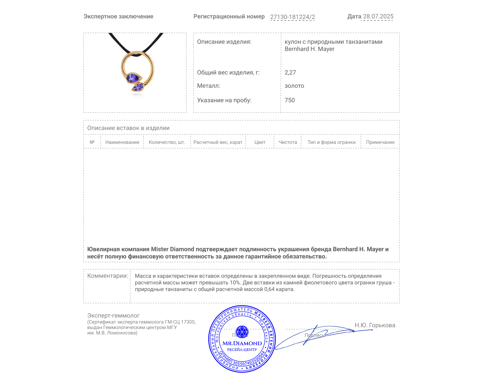 Представляем вашему вниманию оригинальную золотую подвеску с танзанитами 0.64ct от всемирно известного бренда Bernhard H.Mayer из коллекции Blue Drop.