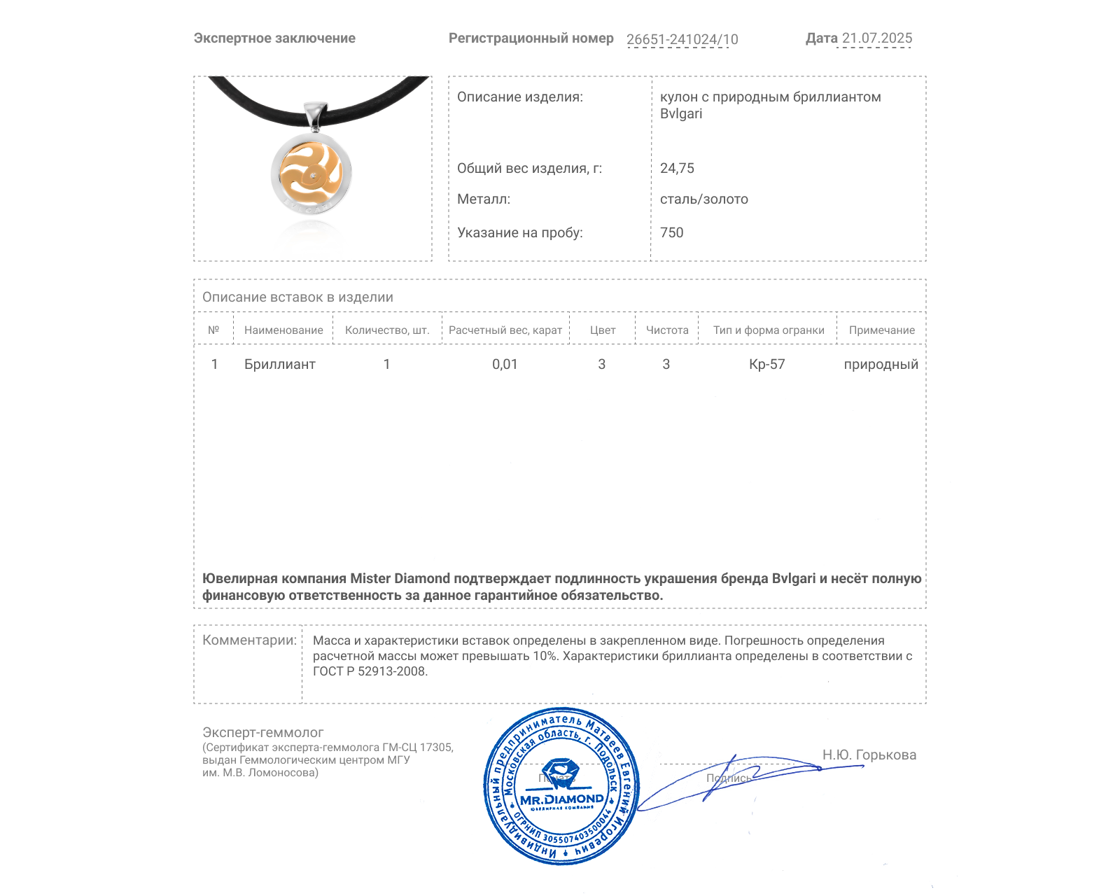 Представляем вашему вниманию оригинальную золотую подвеску с бриллиантом 0.01ct от всемирно известного бренда Bvlgari из коллекции Tondo Snake.