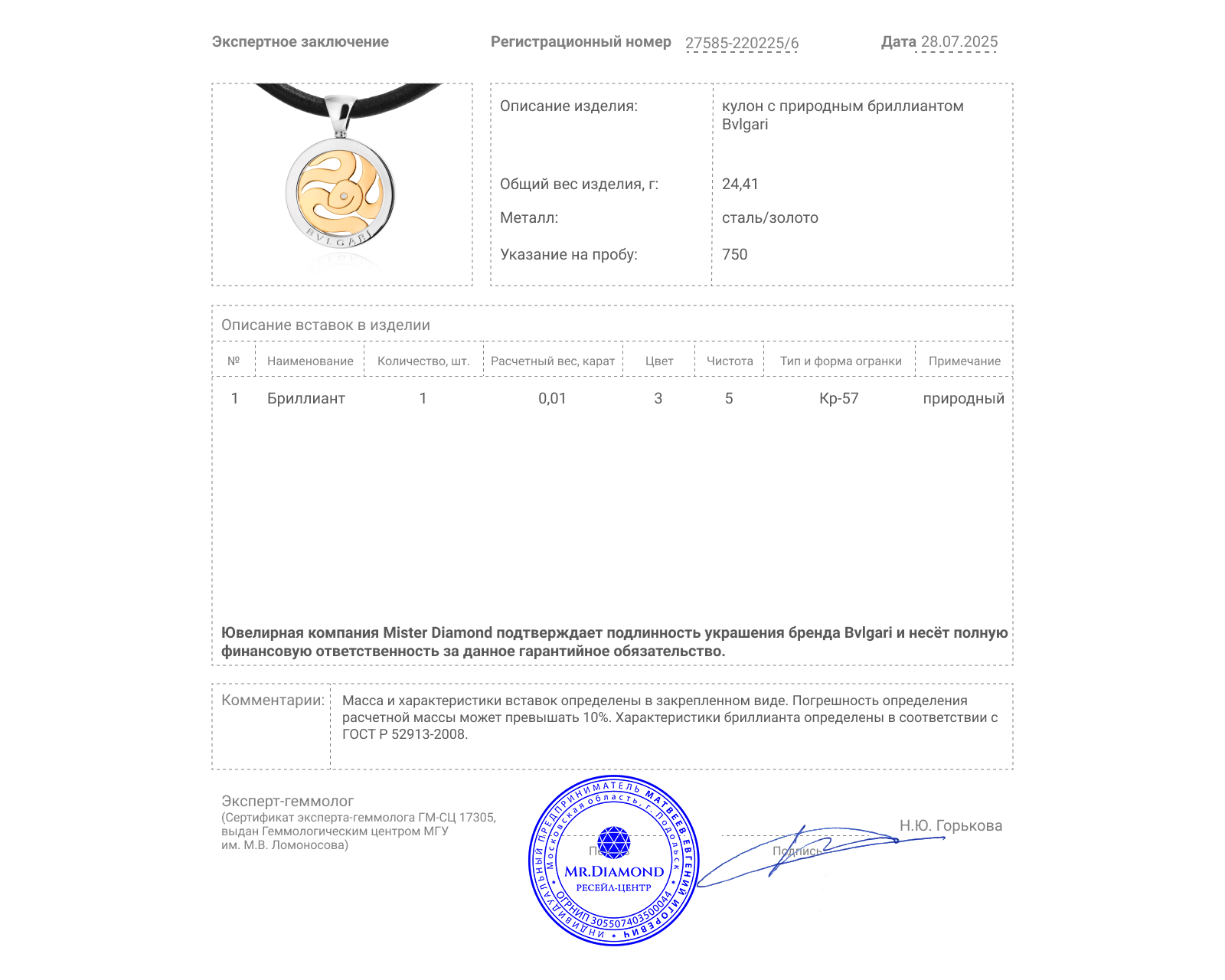 Представляем вашему вниманию оригинальную золотую подвеску с бриллиантом 0.01ct от всемирно известного бренда Bvlgari из коллекции Tondo Snake.