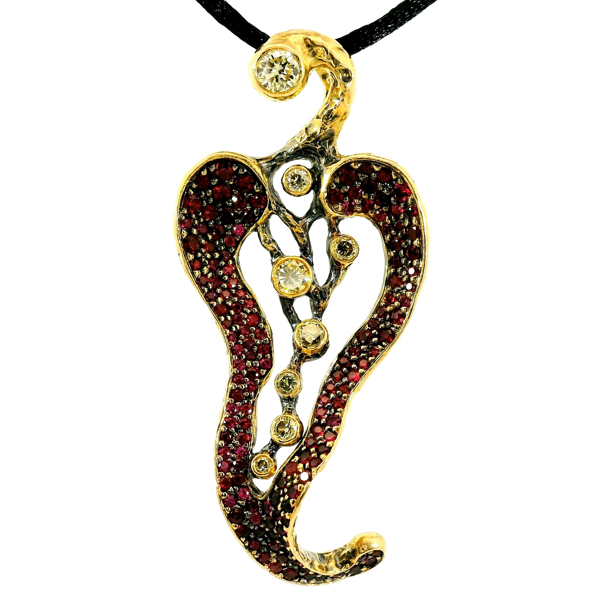Представляем вашему вниманию оригинальную золотую подвеску с рубинами 0.93ct и бриллиантами 0.37ct от всемирно известного бренда Jewellery Theatre из коллекции Chili Caravagio.