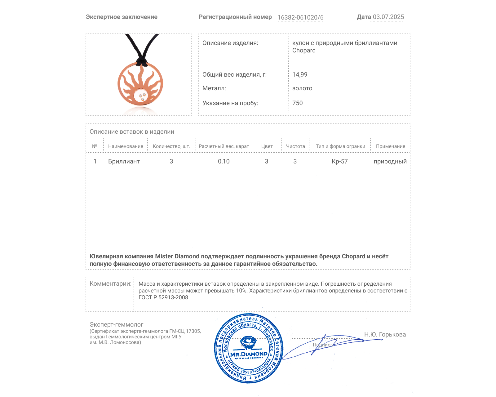 Представляем вашему вниманию оригинальную золотую подвеску с бриллиантами 0.10ct от всемирно известного бренда Chopard из коллекции Happy Sun.