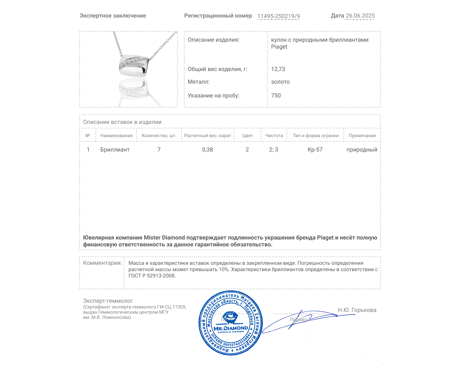 Представляем вашему вниманию оригинальную золотую подвеску с бриллиантами 0.38ct от всемирно известного бренда Piaget из коллекции Dancer.