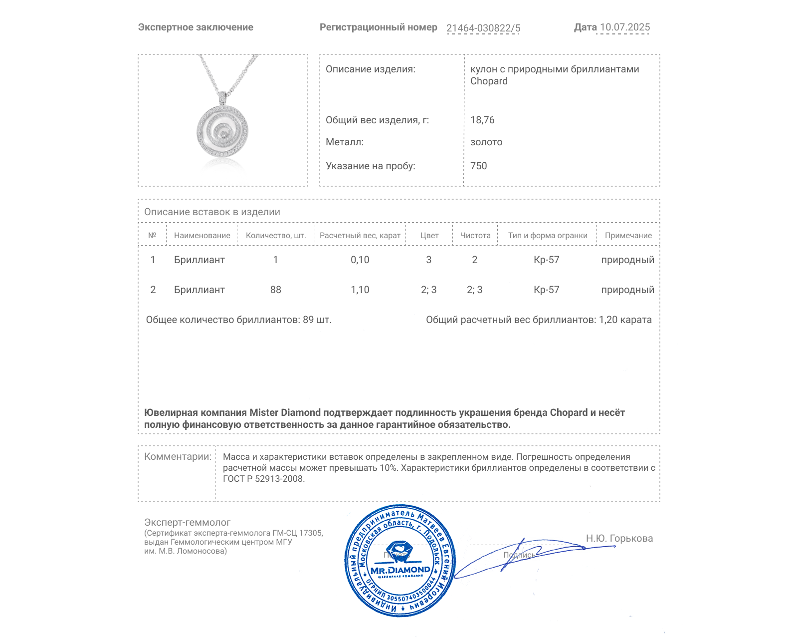 Оригинальный золотой кулон с бриллиантами 1.25ct Chopard 021119/2
