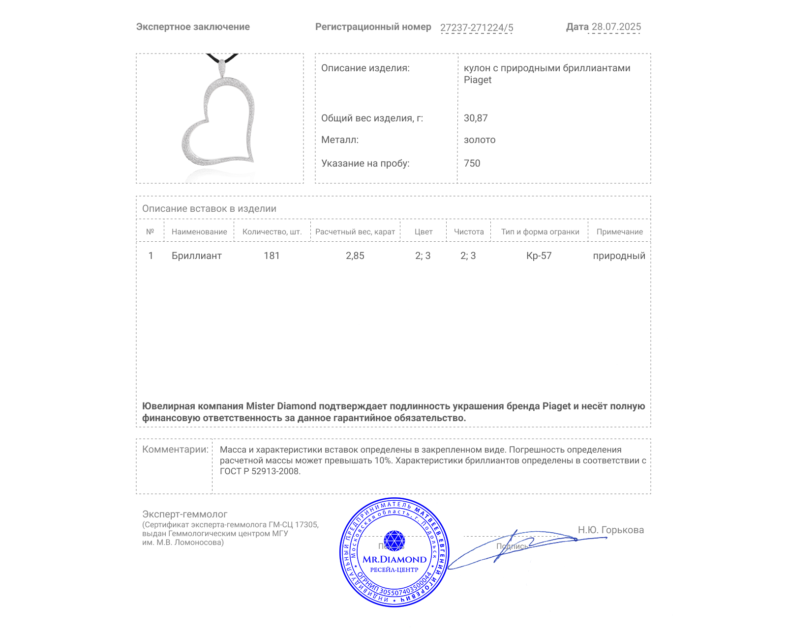 Представляем вашему вниманию оригинальную золотую подвеску с бриллиантами 2.85ct от всемирно известного бренда Piaget из коллекции Funny Heart.