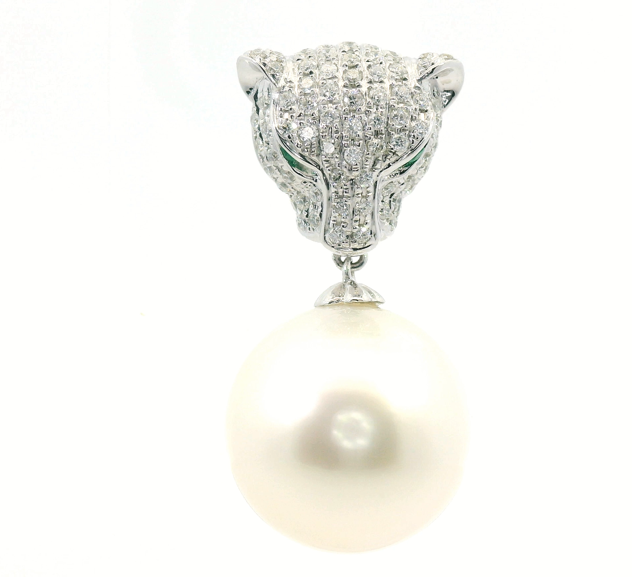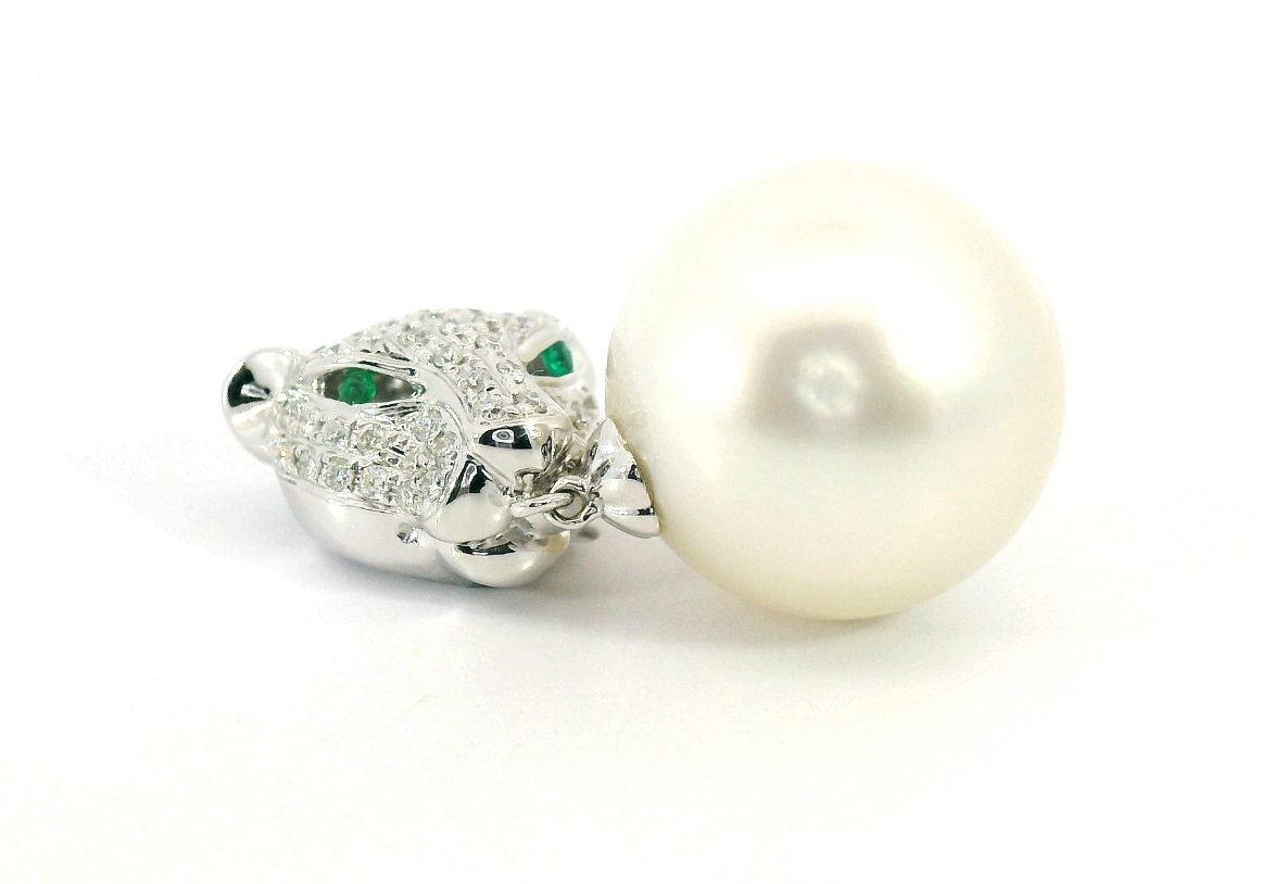 Представляем вашему вниманию оригинальную золотую подвеску с жемчугом 15.50 мм, изумрудами 0.01ct и бриллиантами 0.54ct от всемирно известного бренда UFJ.