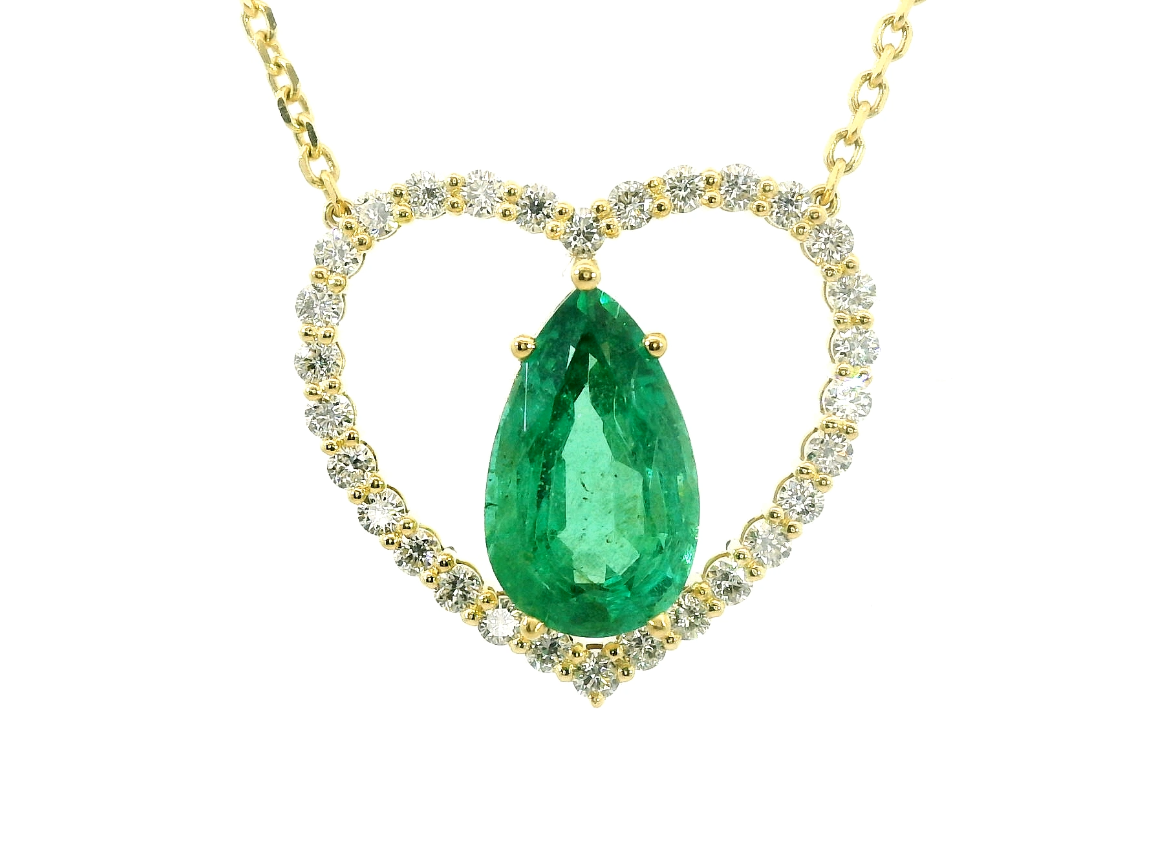 Представляем вашему вниманию золотое колье с изумрудом Замбия 1.98ct, турмалином параиба 0.01ct и бриллиантами 0.40ct.