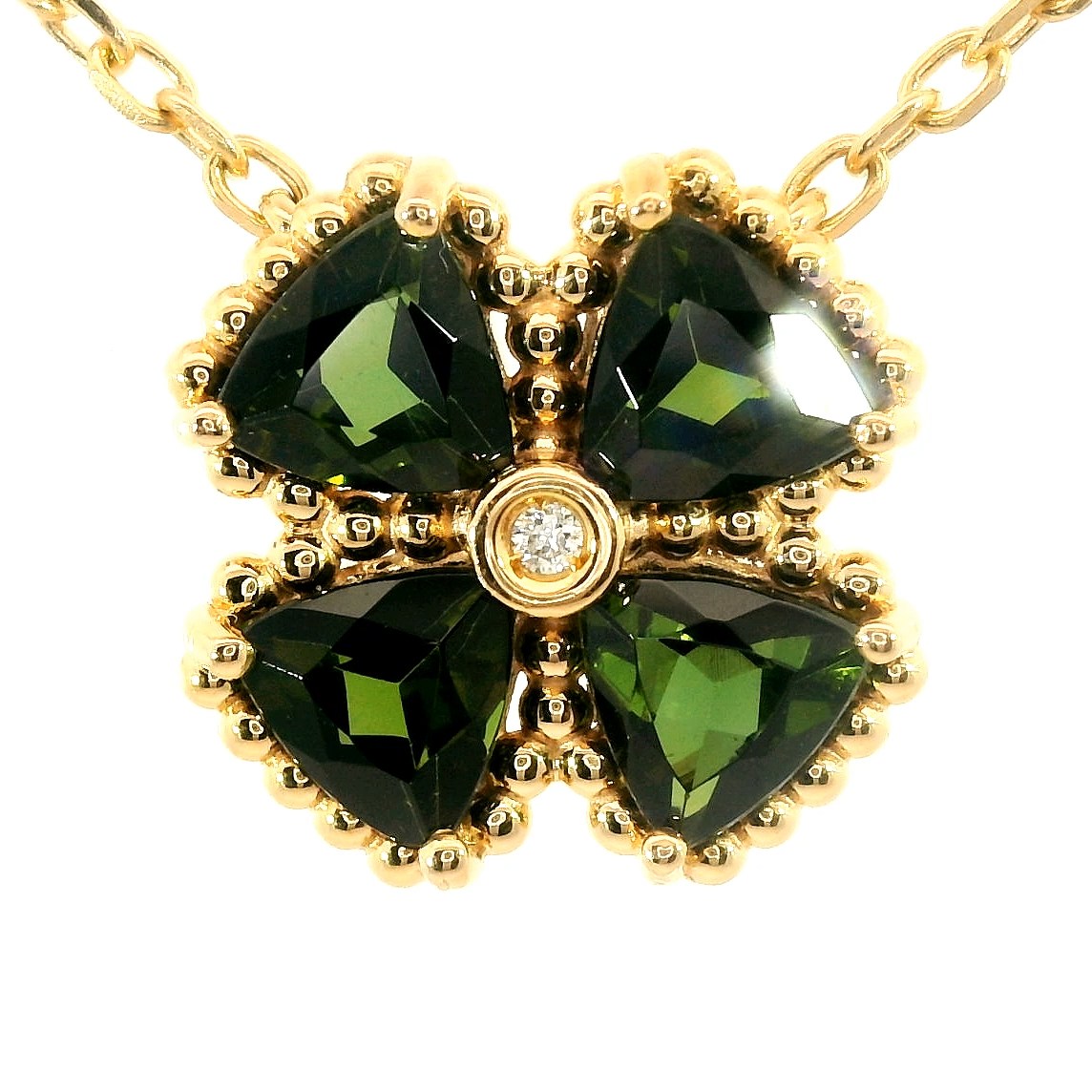 Представляем вашему вниманию золотое колье с турмалинами верделитами 1.74ct и бриллиантом 0.01ct.