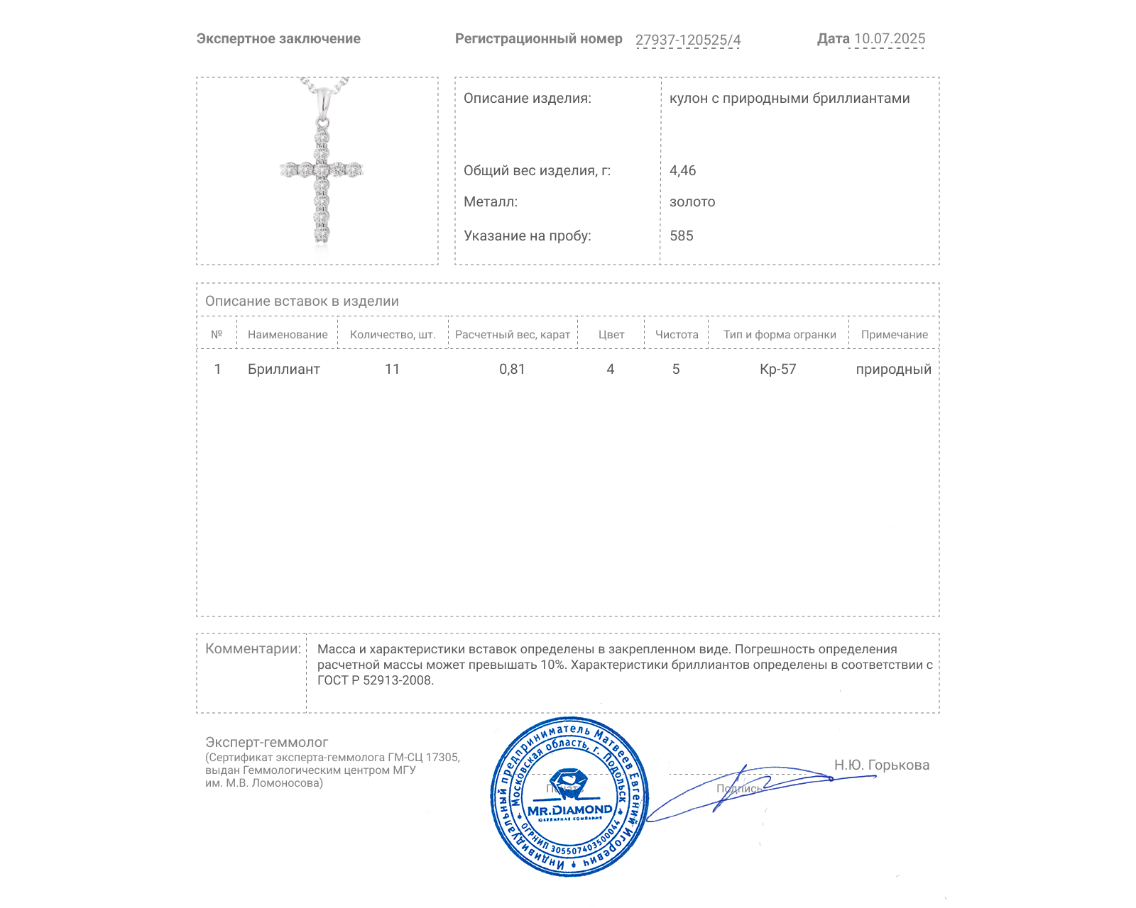 Оригинальный золотой кулон c бриллиантами 0.61ct Gavello 010422/2