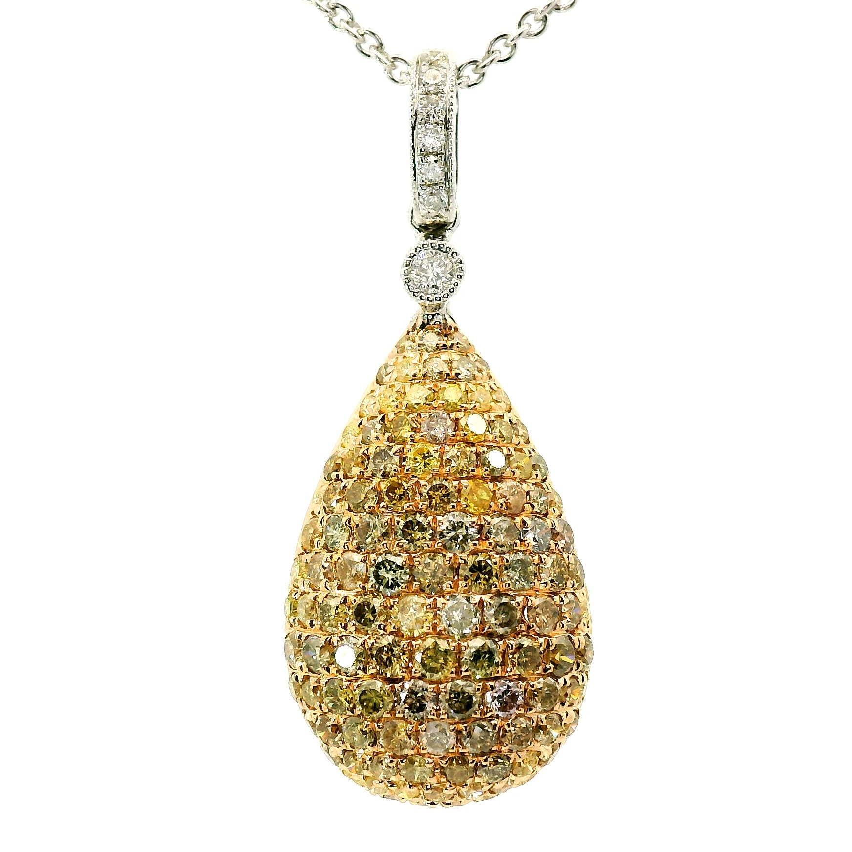 Представляем вашему вниманию золотую подвеску с бесцветными 0.13ct и фантазийно-желтыми 1.52ct бриллиантами.