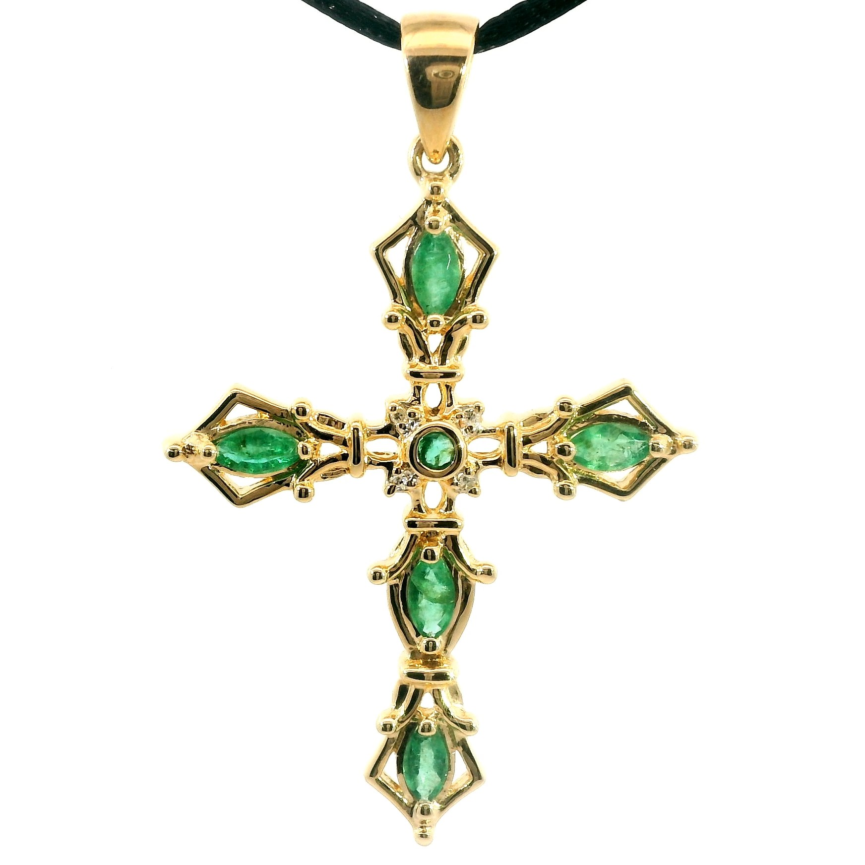 Представляем вашему вниманию золотую подвеску с изумрудами 0.68ct и бриллиантами 0.02ct.