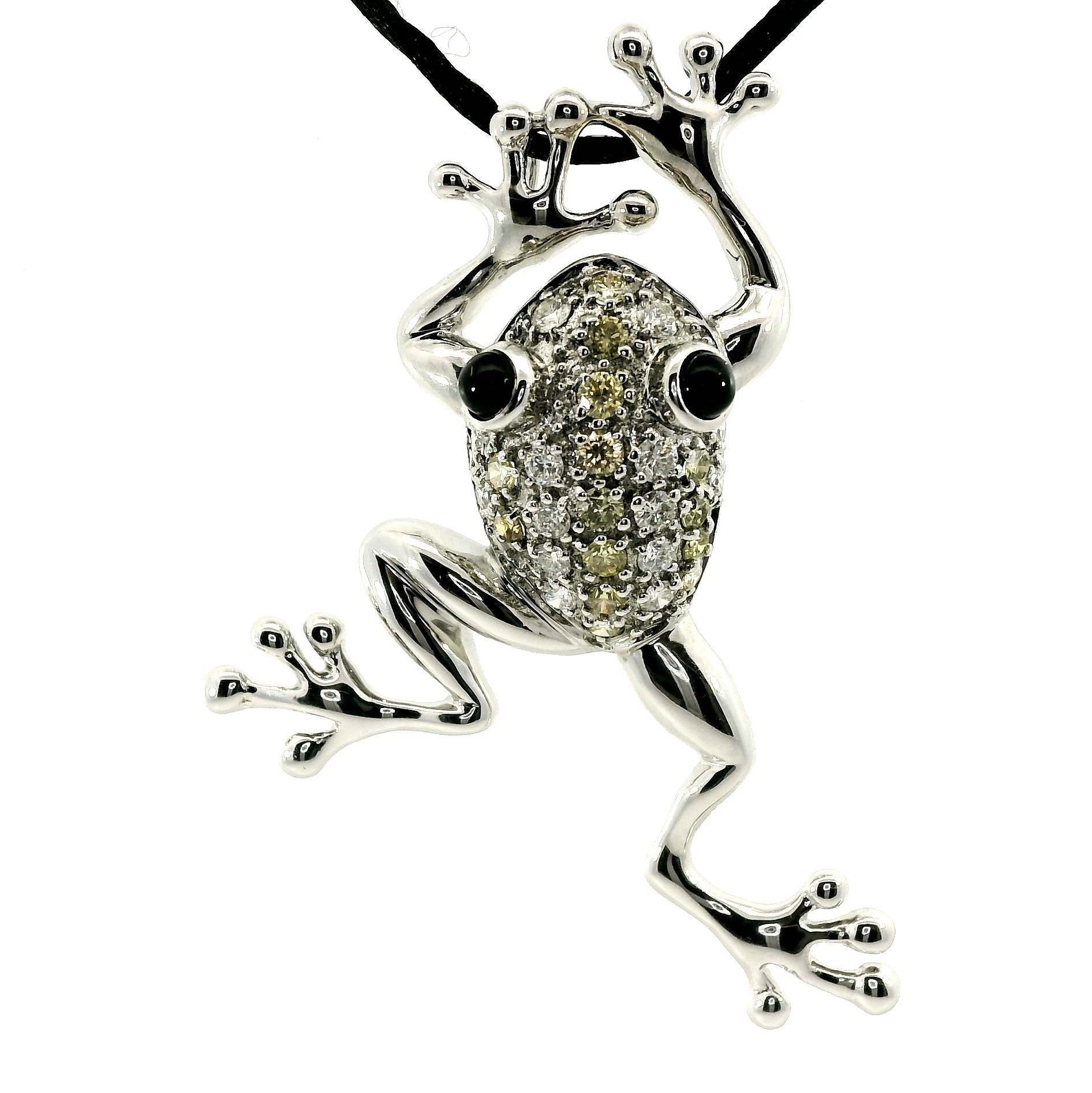 Представляем вашему вниманию золотую подвеску с черным ониксом 0.29ct, бесцветными 0.40ct и желтыми 0.42ct бриллиантами.