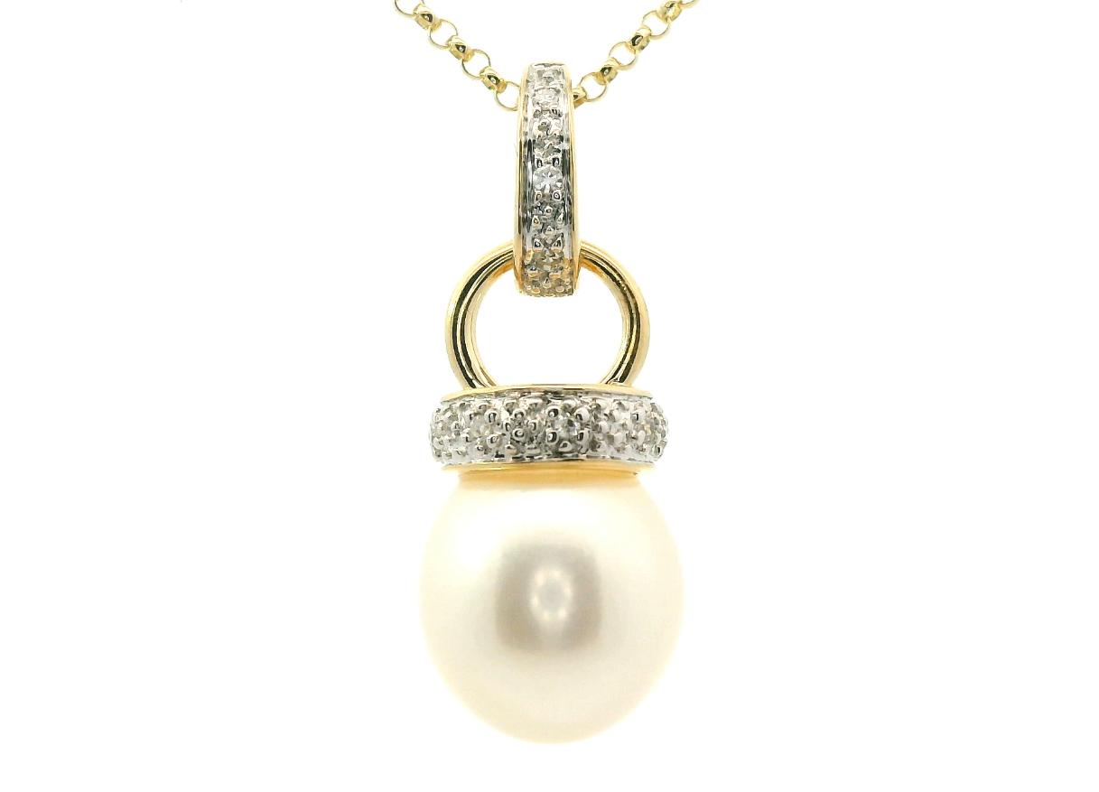Представляем вашему вниманию золотую подвеску с жемчугом 10.20*9.30 мм и бриллиантами 0.04ct.
