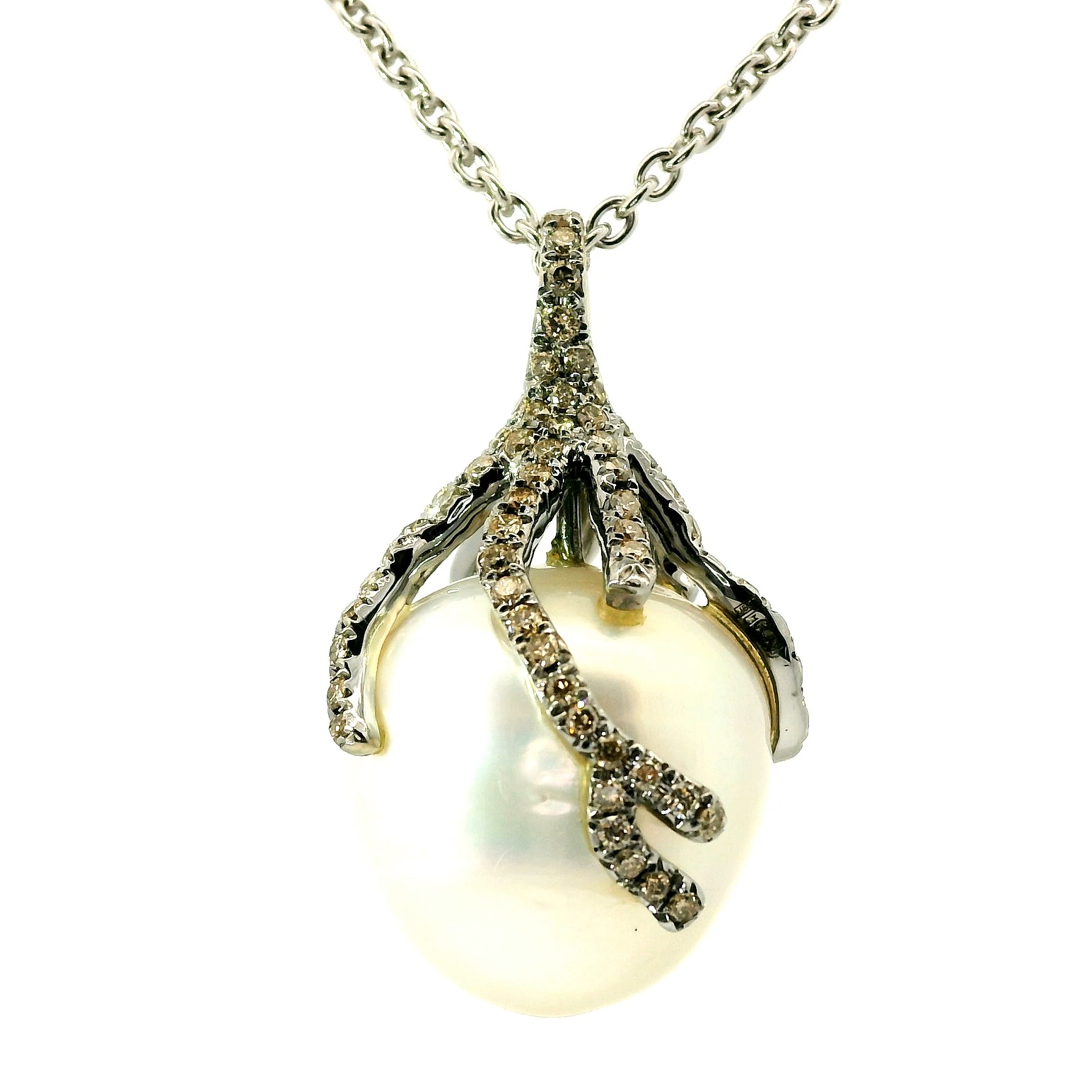 Представляем вашему вниманию золотую подвеску с жемчугом 18.50*17.00 мм и коньячными бриллиантами 1.02ct.