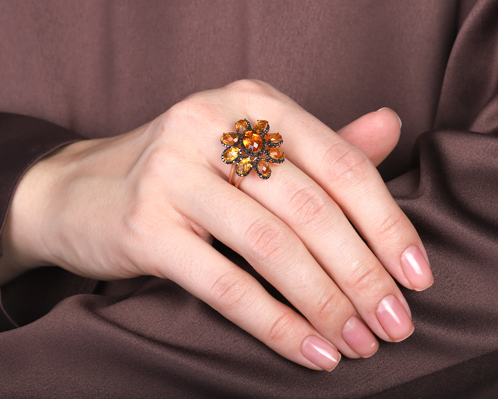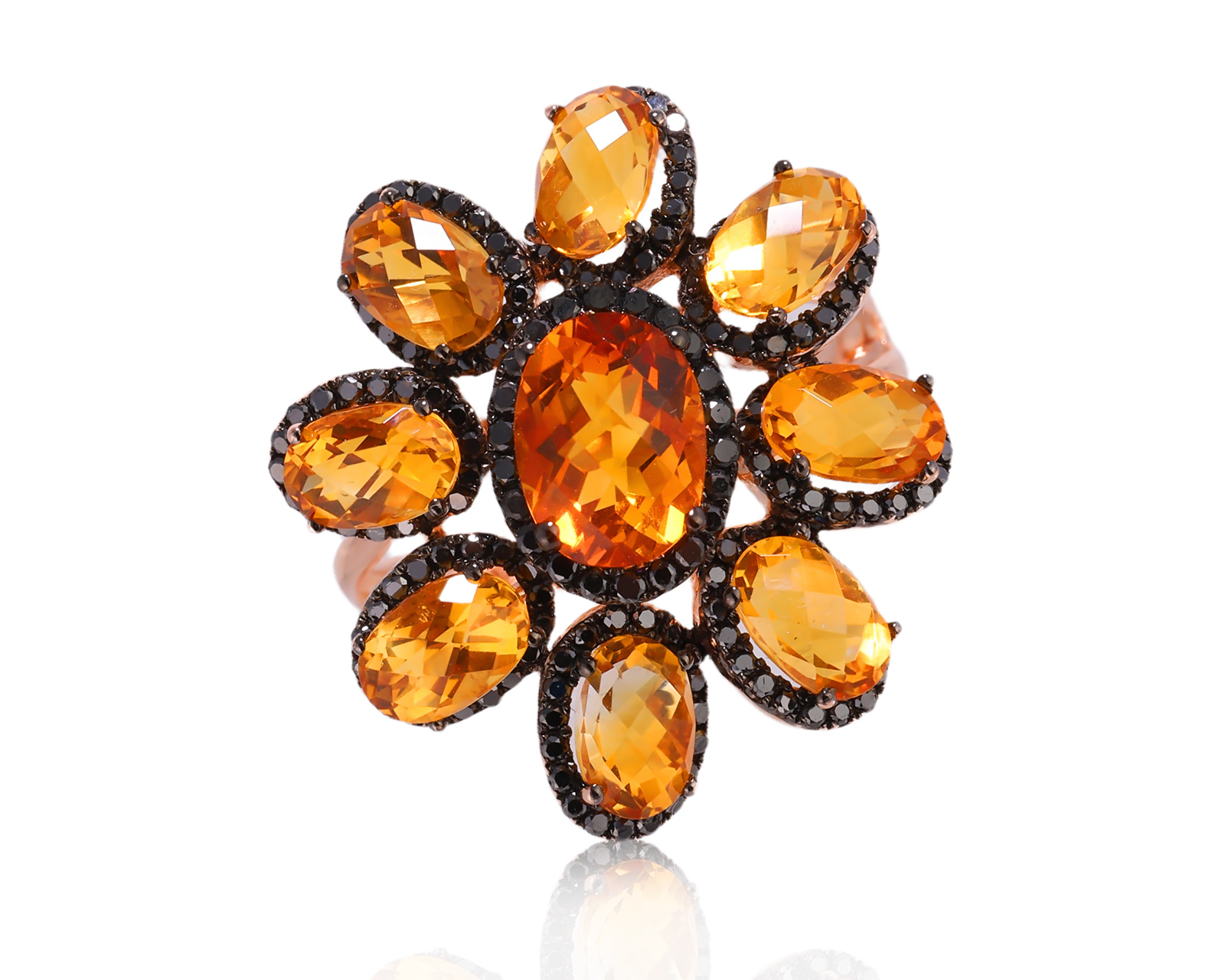 Золотое кольцо с цитринами 5.03ct и бриллиантами 0.63ct
