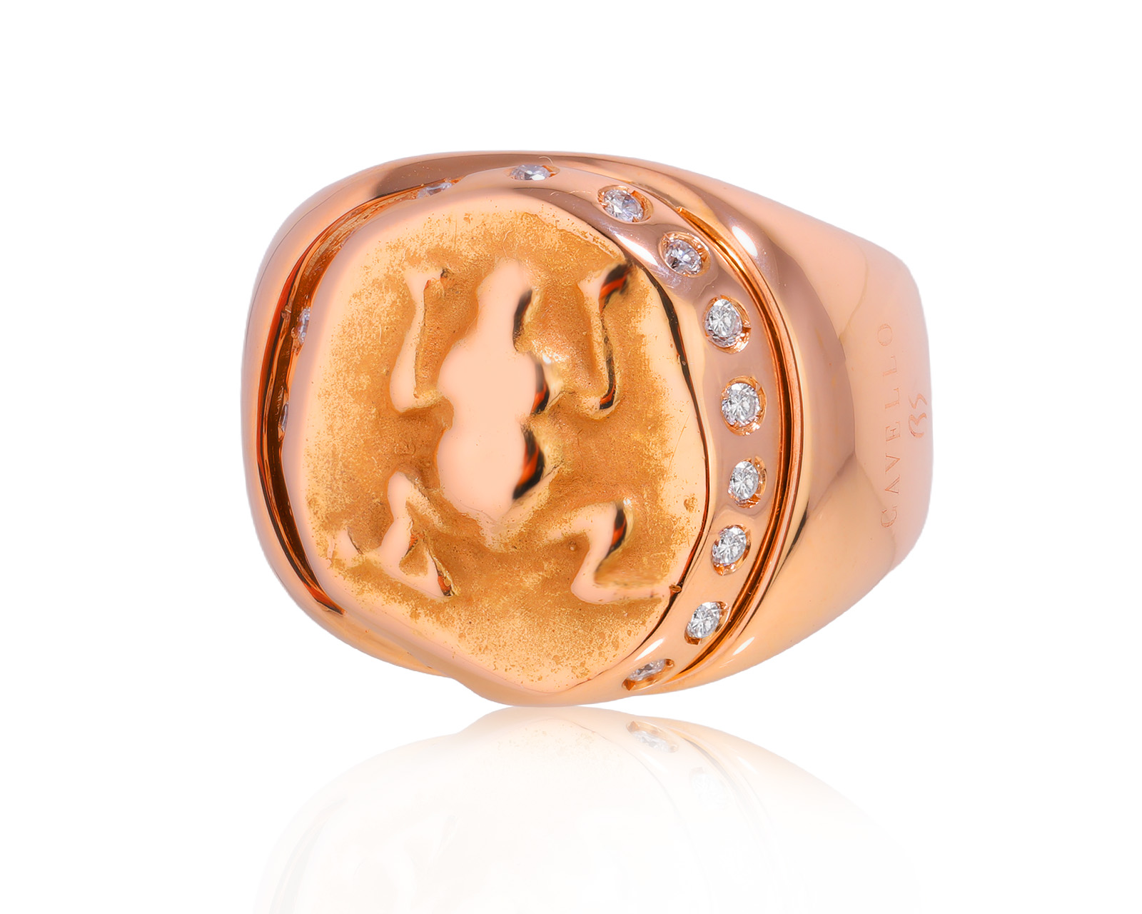 Золотые кольца с эмалью разных оттенков идеально передают южную эстетику. Они широко представлены в коллекциях Dior и Roberto Bravo. А Oroluce Preziosi и Karloff обыгрывают анималистические мотивы, которые подходят к ярким городским образам.