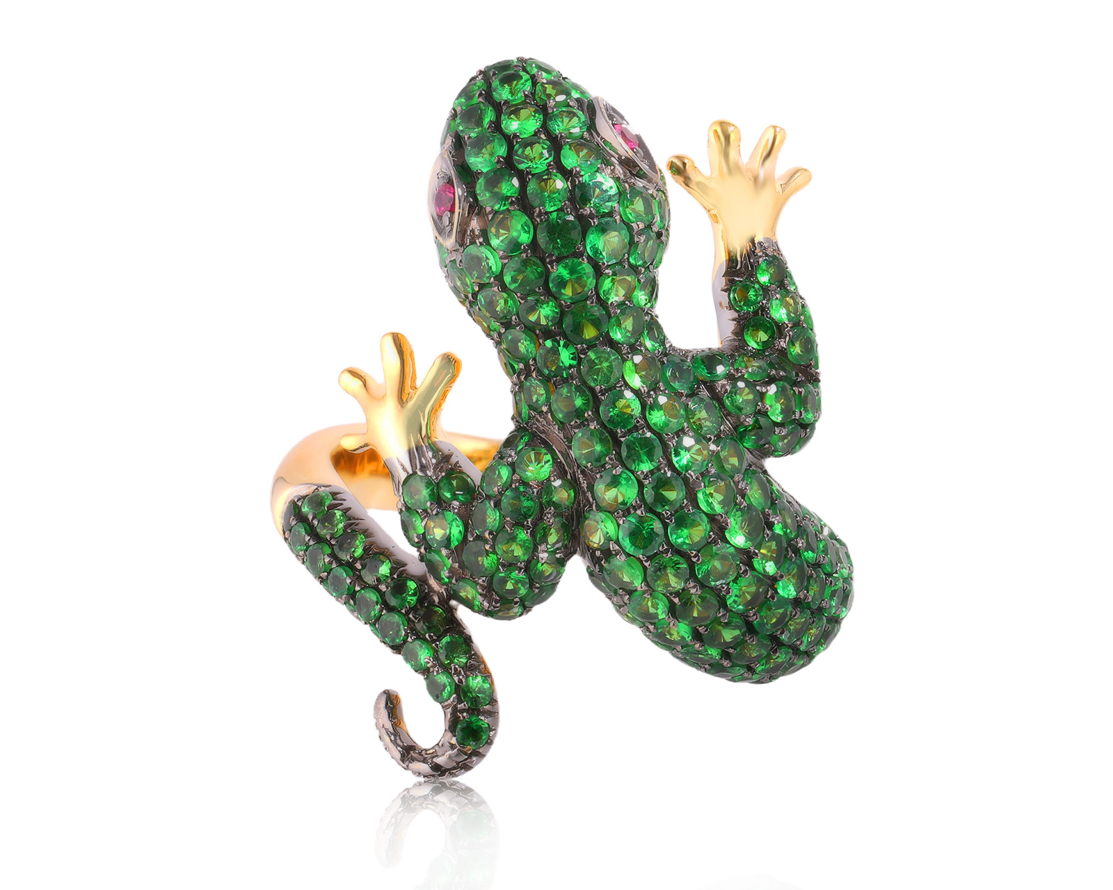 Золотое кольцо с тсаворитами 3.04ct и рубинами 0.03ct 271025/5