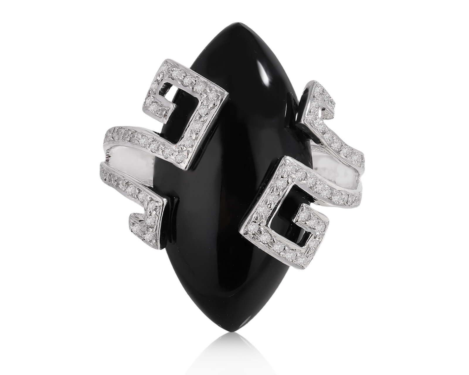 Оникс представлен в природе широкой палитрой оттенков: белых, зеленых, голубых, розовых, коричневых. Самыми ценными и эффектными считаются черные камни с выраженными белыми прослойками или совсем незаметными полосами, которые активно используют для изготовления колец. Ювелирные изделия представлены в коллекциях Chanel, Fani, Corsi, Magerit, Bvlgari, Carl F. Bucherer, Di Modolo и других именитых брендов. Также предлагаем кольца с ониксом без указания бренда, которые сопровождаются экспертным заключением геммолога МГУ.