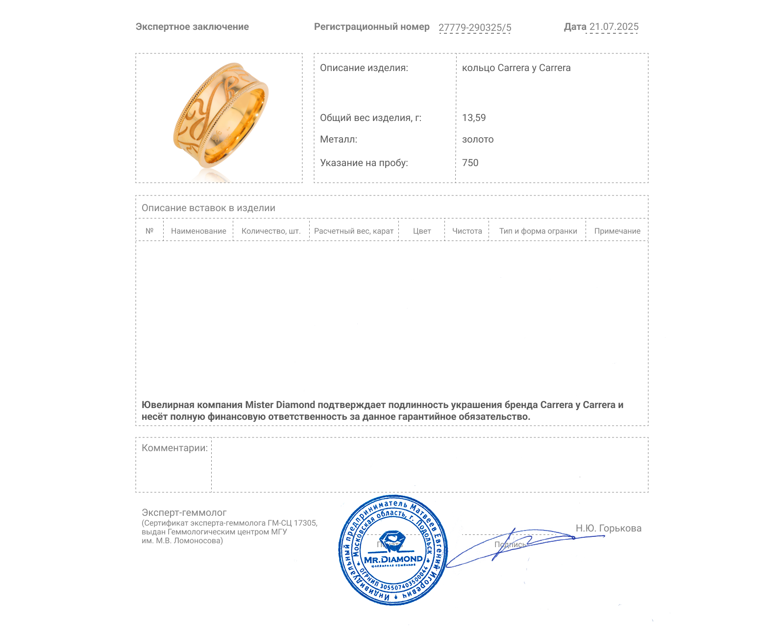 Вставки: Ширина кольца: 9 мм.
