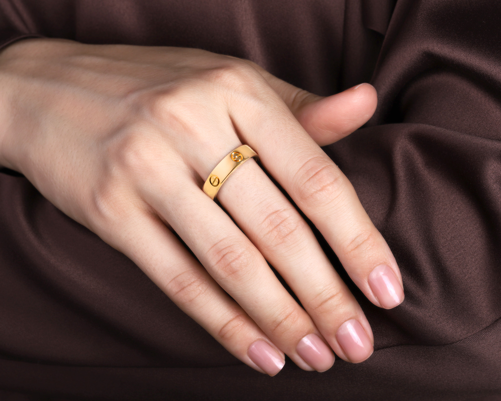Оригинальное золотое кольцо Cartier Love Classic — настоящее произведение искусства, в котором воплощено не только мастерство ювелира, но и актуальные тренды. Это доказательство вашего изысканного вкуса, высокого статуса и яркий акцент в стильном образе. Вставка — Ширина кольца: 5.5 мм., а обрамлением служит золото 750 пробы. Такое сочетание отлично смотрится и позволяет реализовывать самые необычные задумки вашего стиля. Размер ювелирного изделия — 19.75, а общий вес — 6.51 г, и на пальце оно выглядит просто шикарно, сразу привлекая восхищенное внимание.