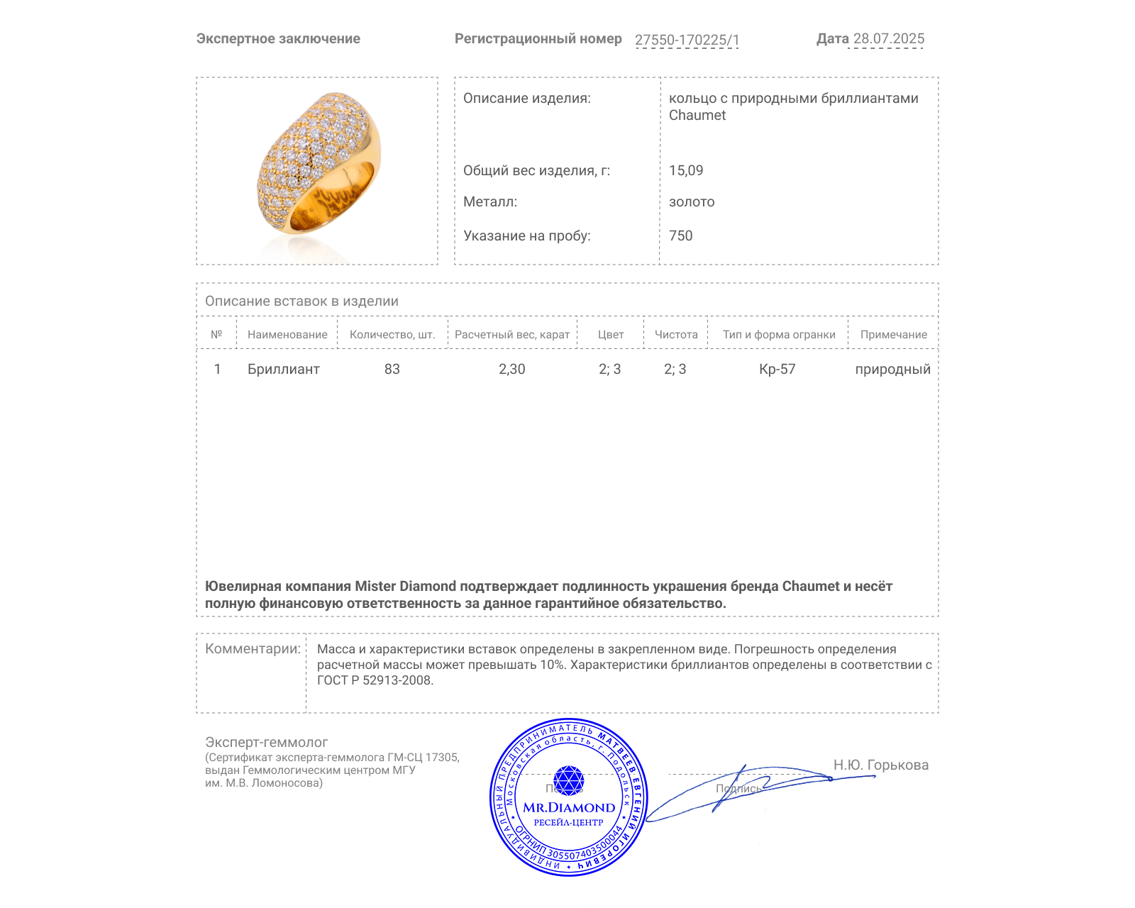 Оригинальное золотое кольцо с бриллиантами 2.20ct Chaumet 170423/2