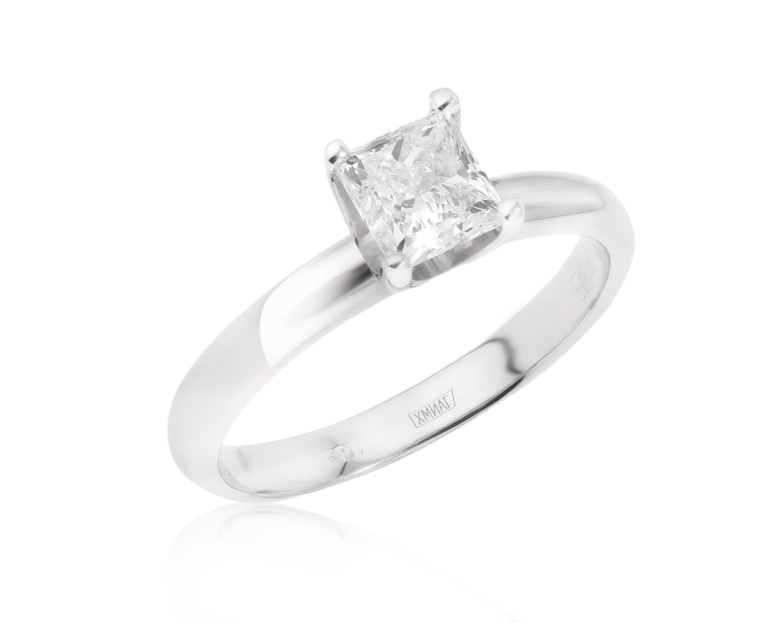 Вставки: 1 бриллиант огранки "принцесса" 0.84ct 4/7 (F/SI1)