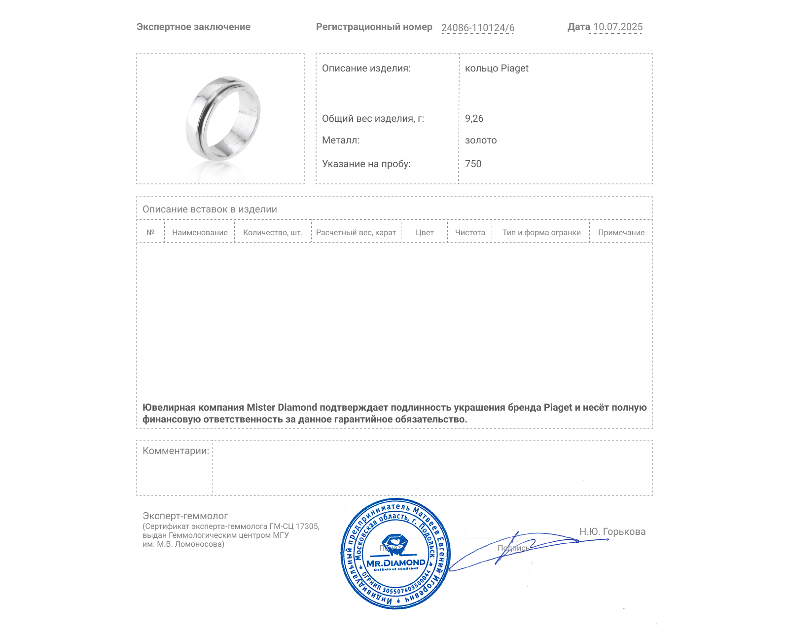 Если у вас есть вопросы, претензии или пожелания, руководство Mister Diamond всегда открыто для диалога.
