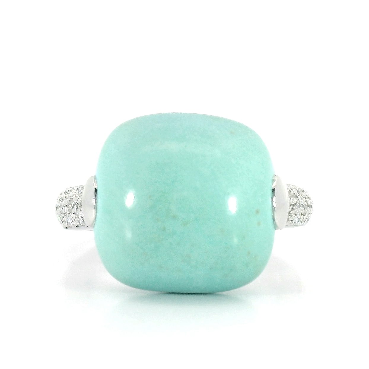 Оригинальное золотое кольцо с бирюзой 7.20ct Zoccai — настоящее произведение искусства, в котором воплощено не только мастерство ювелира, но и актуальные тренды. Это доказательство вашего изысканного вкуса, высокого статуса и яркий акцент в стильном образе. Вставка — 1 бирюза огранки "кабошон квадрат" 7.20ct, 36 бриллиантов круглой огранки 0.21ct 3/3-3/4, а обрамлением служит золото 750 пробы. Такое сочетание отлично смотрится и позволяет реализовывать самые необычные задумки вашего стиля. Размер ювелирного изделия — 17.25, а общий вес — 8.09 г, и на пальце оно выглядит просто шикарно, сразу привлекая восхищенное внимание.