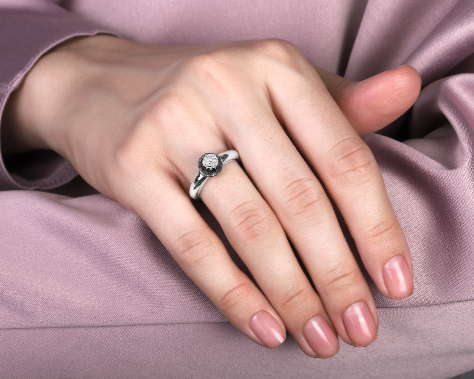 Оригинальное золотое кольцо с бриллиантами 0.55ct Chopard — настоящее произведение искусства, в котором воплощено не только мастерство ювелира, но и актуальные тренды. Это доказательство вашего изысканного вкуса, высокого статуса и яркий акцент в стильном образе. Вставка — 7 бриллиантов круглой огранки 0.10ct 3/3, 24 черных бриллианта круглой огранки 0.45ct 7/9, а обрамлением служит золото 750 пробы. Такое сочетание отлично смотрится и позволяет реализовывать самые необычные задумки вашего стиля. Размер ювелирного изделия — 17, бесплатно изменим на любой от 16.5 до 18, а общий вес — 6.57 г, и на пальце оно выглядит просто шикарно, сразу привлекая восхищенное внимание.