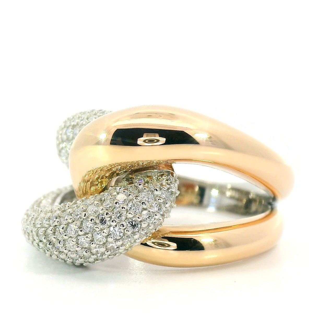 Оригинальное золотое кольцо с бриллиантами 1.18ct Roberto Bravo — настоящее произведение искусства, в котором воплощено не только мастерство ювелира, но и актуальные тренды. Это доказательство вашего изысканного вкуса, высокого статуса и яркий акцент в стильном образе. Вставка — 187 бриллиантов круглой огранки 1.18ct 3/3-4/4, а обрамлением служит золото 585 пробы. Такое сочетание отлично смотрится и позволяет реализовывать самые необычные задумки вашего стиля. Размер ювелирного изделия — 18.5, а общий вес — 7.08 г, и на пальце оно выглядит просто шикарно, сразу привлекая восхищенное внимание.