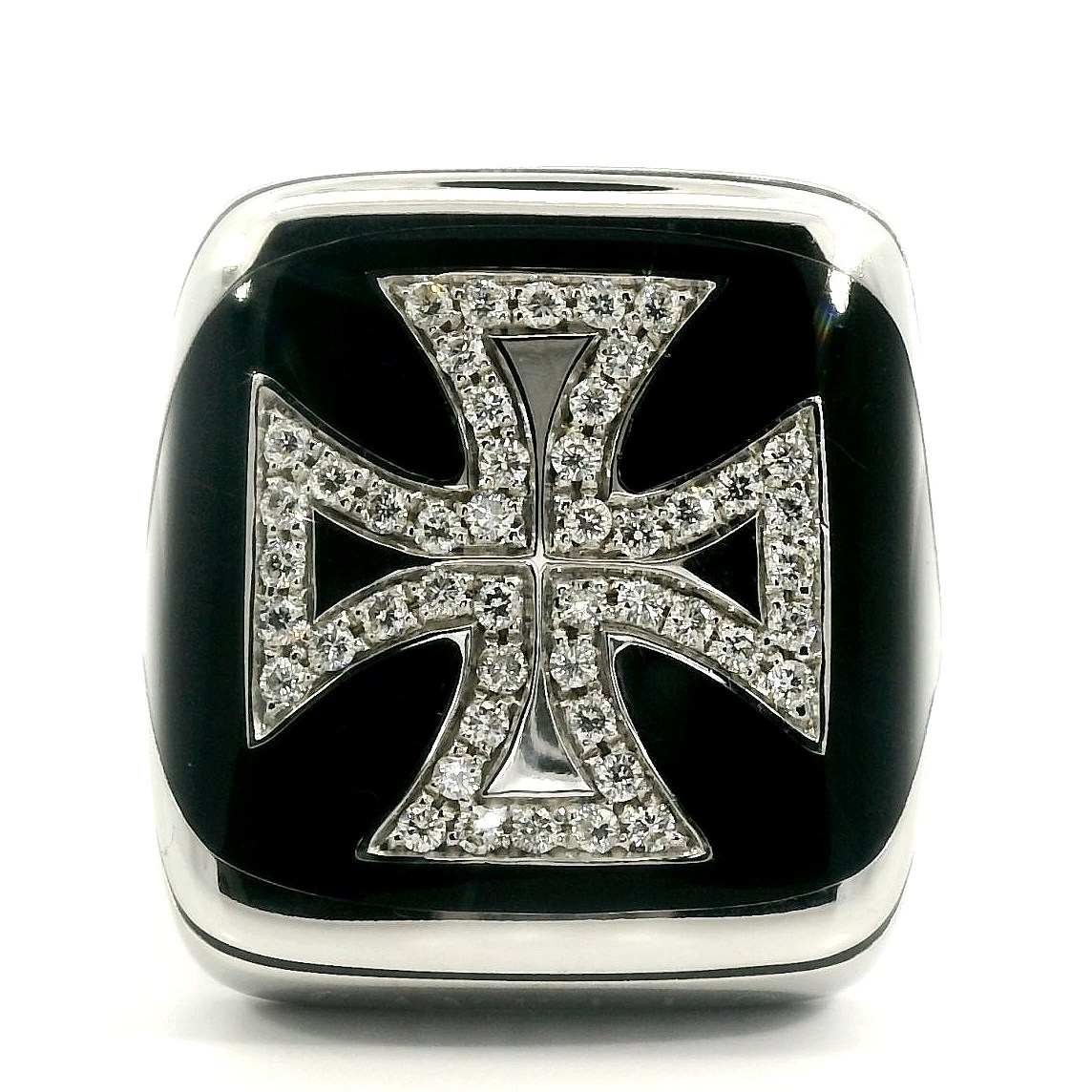 Золотое кольцо-печатка с черными и белыми бриллиантами 1.35ct 201218/12