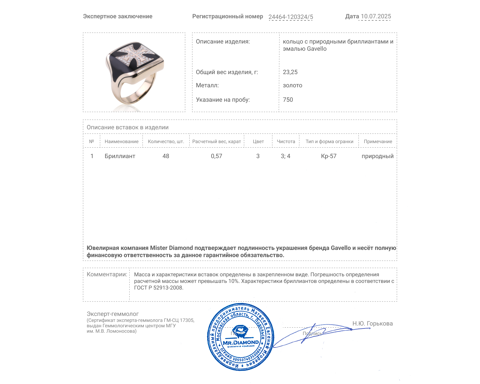 Оригинальное золотое кольцо с эмалью 4.75ct Gavello 290824/14