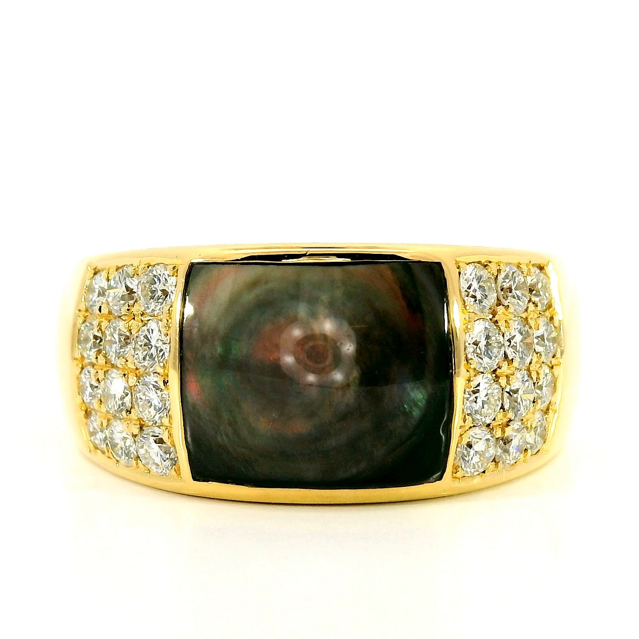 Оригинальное золотое кольцо с перламутром 1.10ct WZP Werner Zappe Pforzheim — настоящее произведение искусства, в котором воплощено не только мастерство ювелира, но и актуальные тренды. Это доказательство вашего изысканного вкуса, высокого статуса и яркий акцент в стильном образе. Вставка — 1 перламутр фантазийной огранки 1.10ct, 24 бриллианта круглой огранки 0.95ct 3/3-3/5, а обрамлением служит золото 750 пробы. Такое сочетание отлично смотрится и позволяет реализовывать самые необычные задумки вашего стиля. Размер ювелирного изделия — 19.25, бесплатно изменим на 19.75, а общий вес — 18.96 г, и на пальце оно выглядит просто шикарно, сразу привлекая восхищенное внимание.