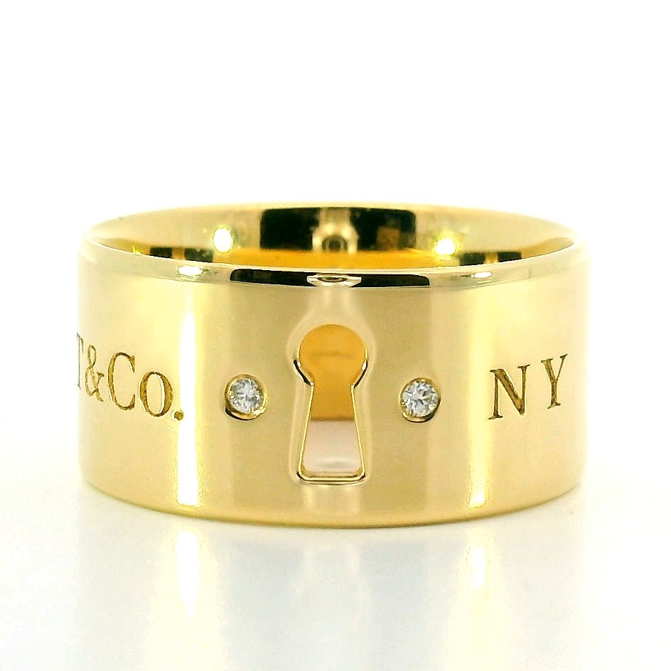 Оригинальное золотое кольцо Tiffany&Co Keyhole — настоящее произведение искусства, в котором воплощено не только мастерство ювелира, но и актуальные тренды. Это доказательство вашего изысканного вкуса, высокого статуса и яркий акцент в стильном образе. Вставка — 2 бриллианта круглой огранки 0.02ct 3/3, а обрамлением служит золото 750 пробы. Такое сочетание отлично смотрится и позволяет реализовывать самые необычные задумки вашего стиля. Размер ювелирного изделия — 17.25, бесплатно изменим на любой от 16.25 до 18.25, а общий вес — 9.33 г, и на пальце оно выглядит просто шикарно, сразу привлекая восхищенное внимание.